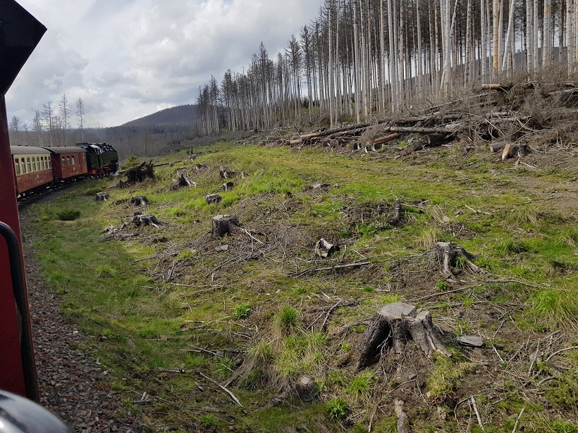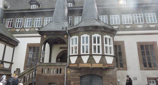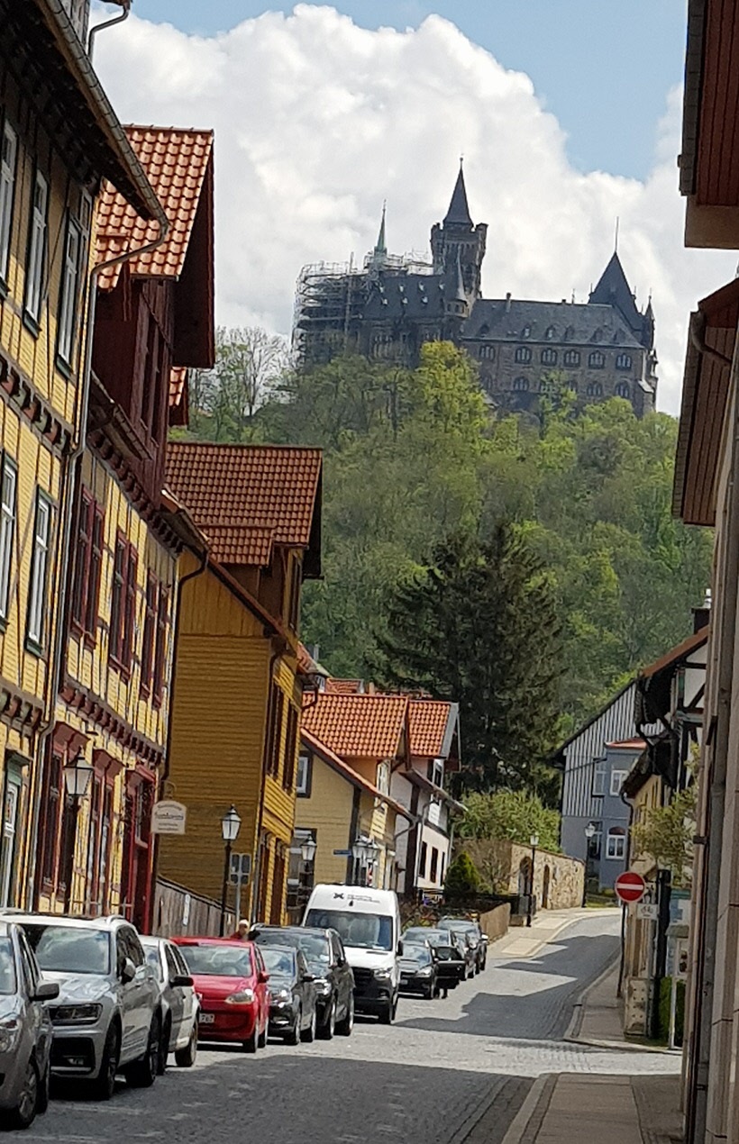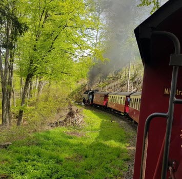 Wernigerodes stadskärna består av färgglada och målade korsvirkeshus och en Marktplatz. Efter en lunchpaus tog vi vår reserverade tågkupé i besittning och for genom staden på smalspårig räls upp i Harzbergen. I Schierke steg vi av för att hämtas av bussen.