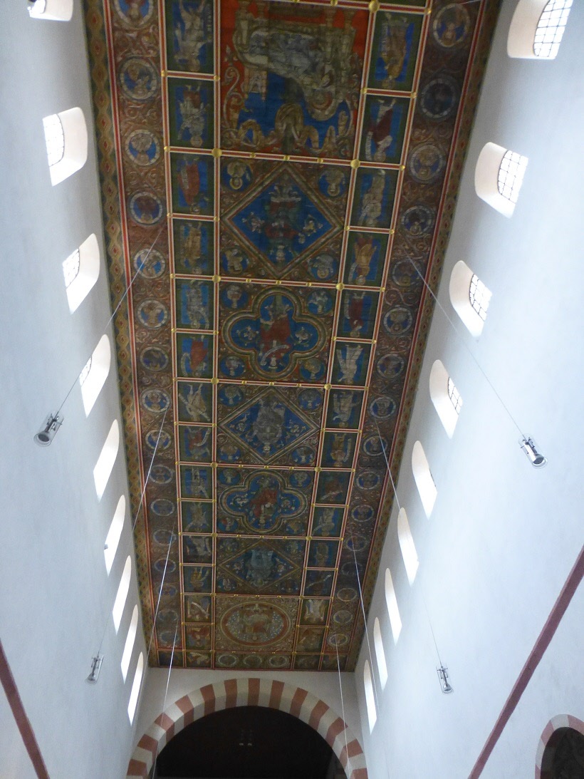 De berömda takmålningarna, målade omkring år 1230, med en längd av 27,6 meter avbildar Jesu släktträd. Sevärt är även Änglakörerna och kryptan som innehåller biskop Bernwards gravkammare.