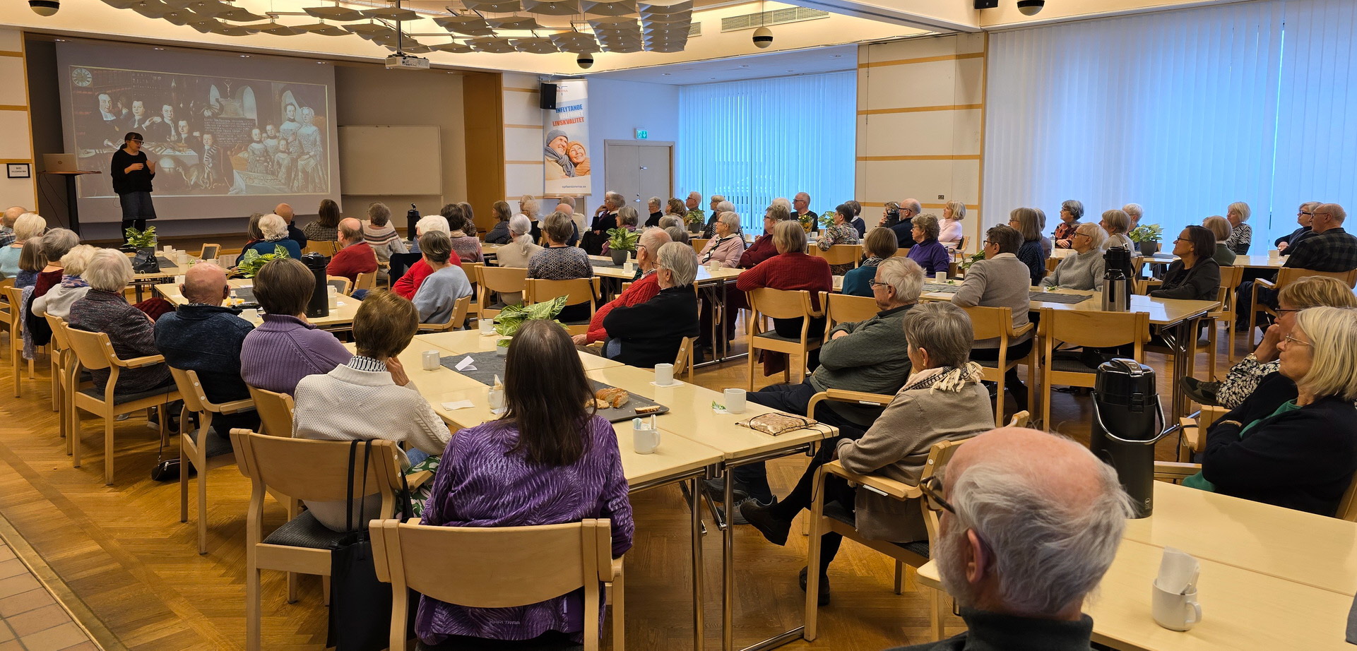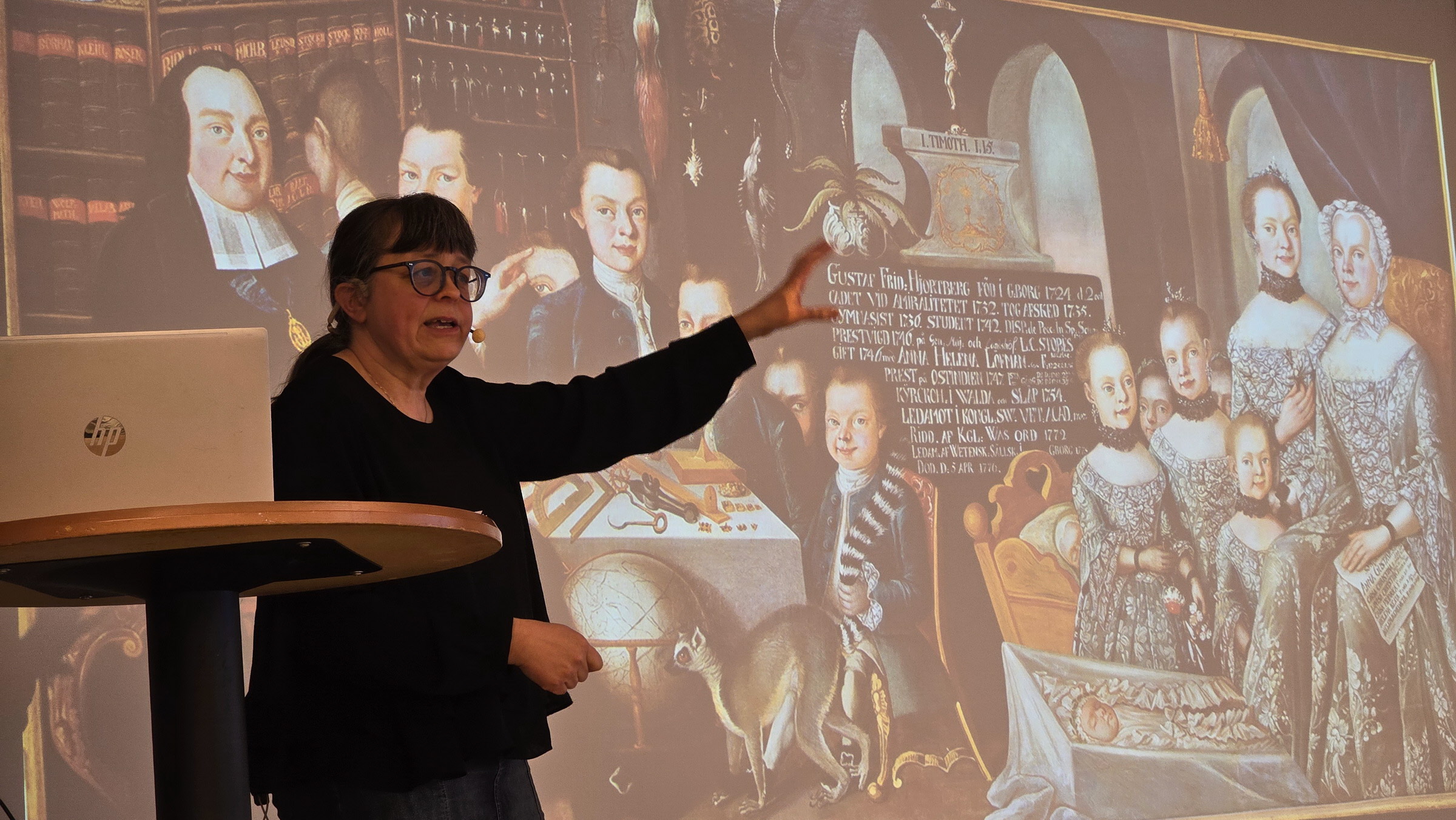 Efter god fika och trevligt lotteri berättade museipedagog Inger Alebo om den intressanta prästen Gustav Fredrik Hjortberg (född 2/10 1724) med sin barnrika familj. En mycket uppskattad föreläsning av Inger Alebo, som fick kraftiga applåder vid avslutningen.