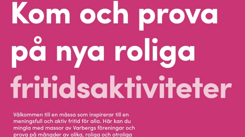 Välkommen till en mässa som inspirerar till en meningsfull och aktiv fritid för alla. Här kan du mingla med massor av Varbergs föreningar och prova på mängder av olika, roliga och otroliga fritidsaktiviteter, samlade på ett och samma ställe.