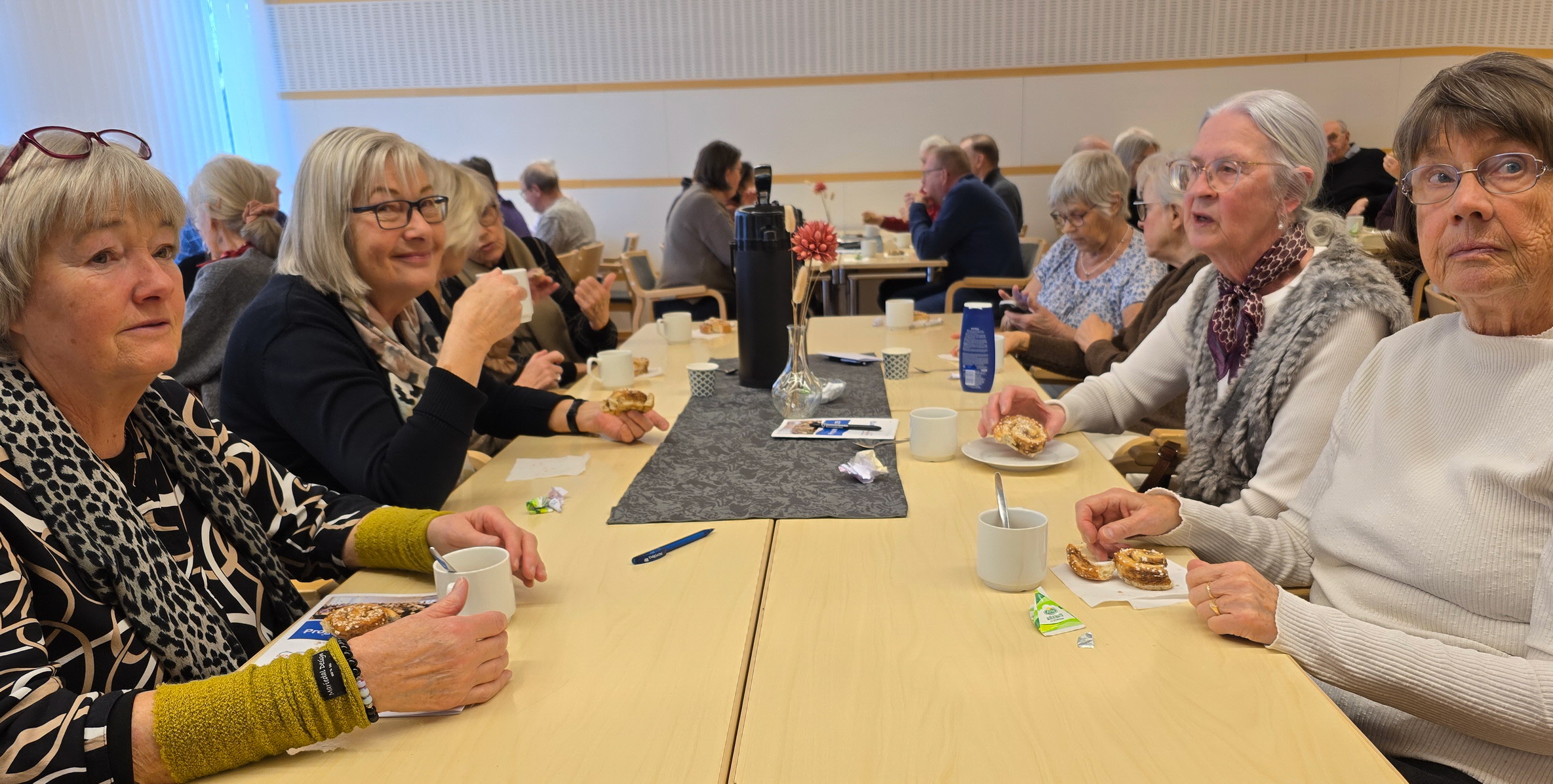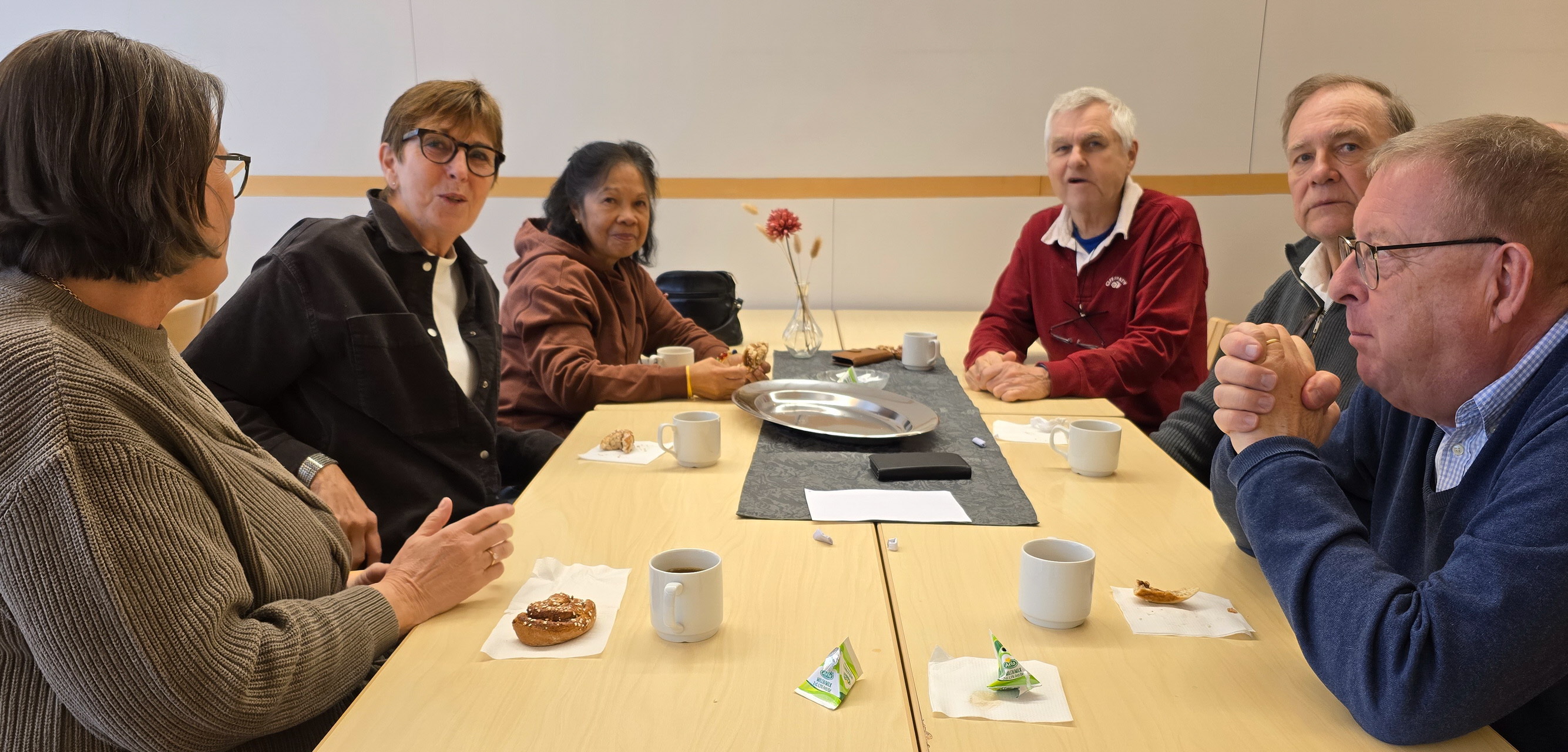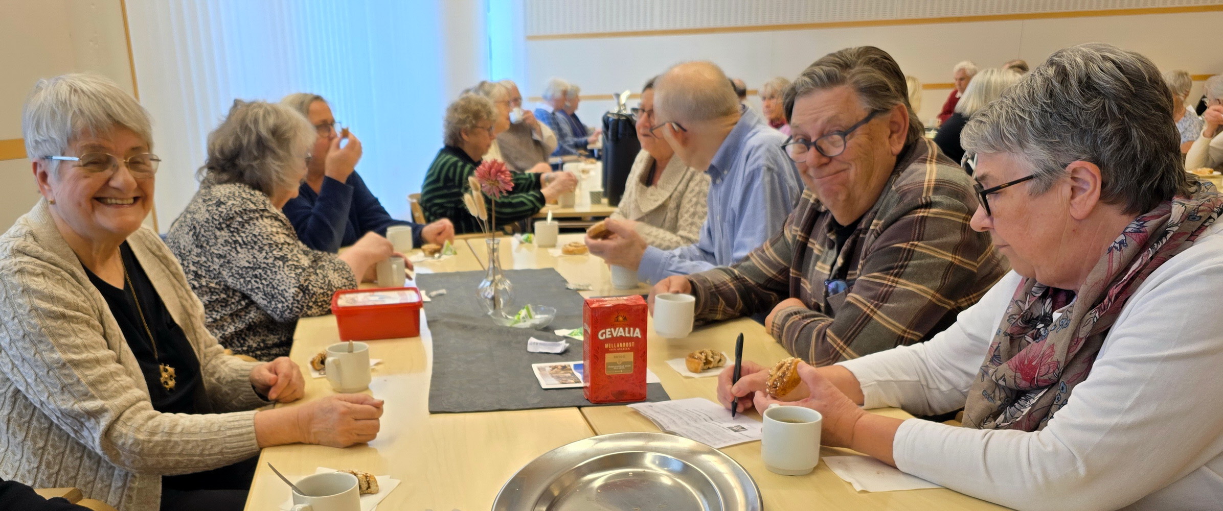Kaffe och kanelbulle smakade gott och stämningen för god.