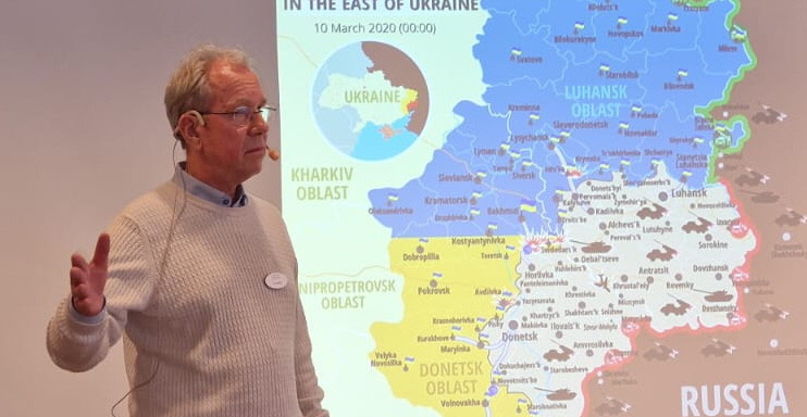 Vid föreläsningen som avslutade medlemsträffen, beskrev Lars Björk kort det försämrade omvärldsläget. Huvudinnehållet handlade om civilt försvar då och nu.