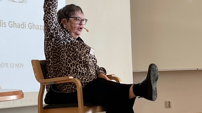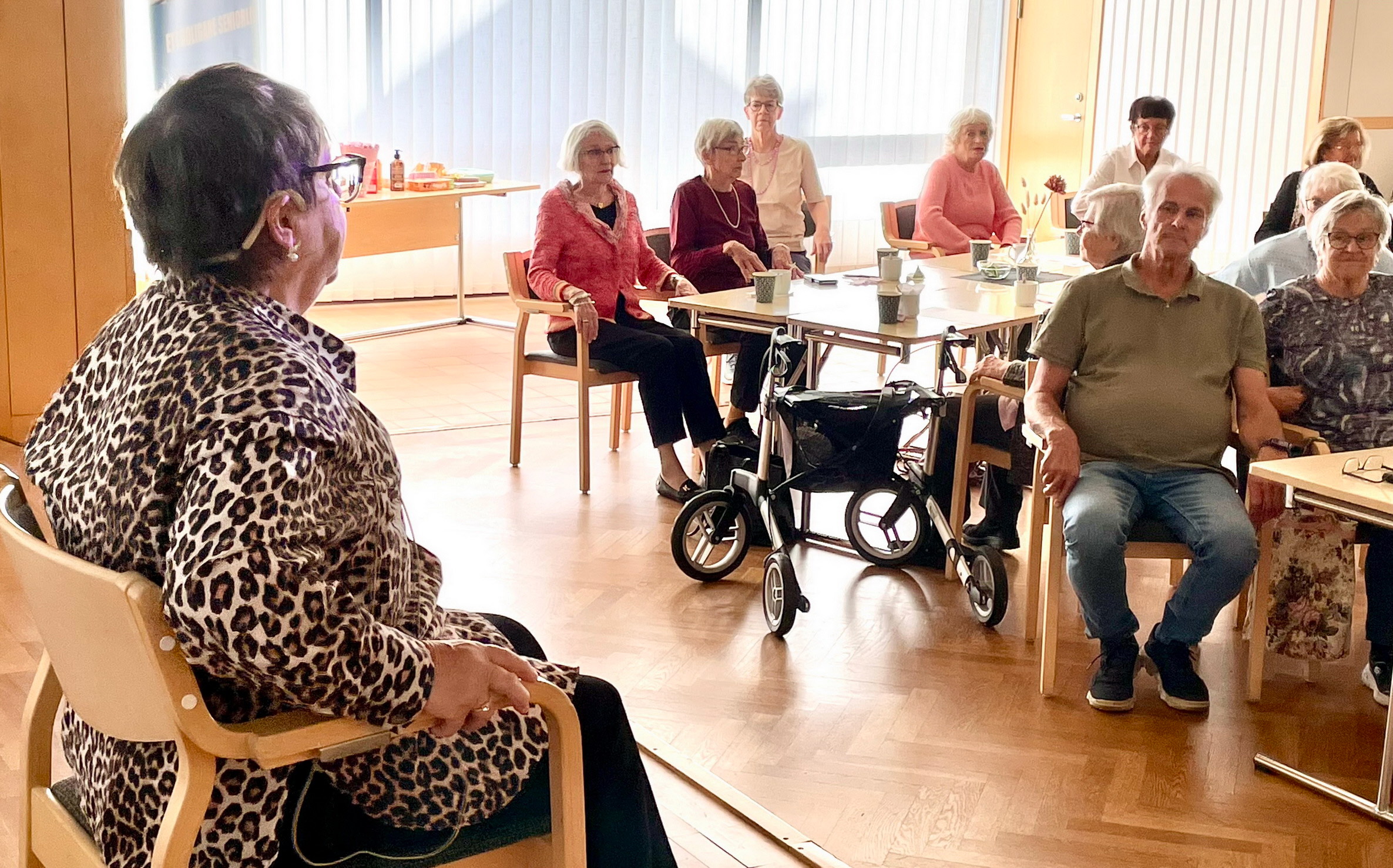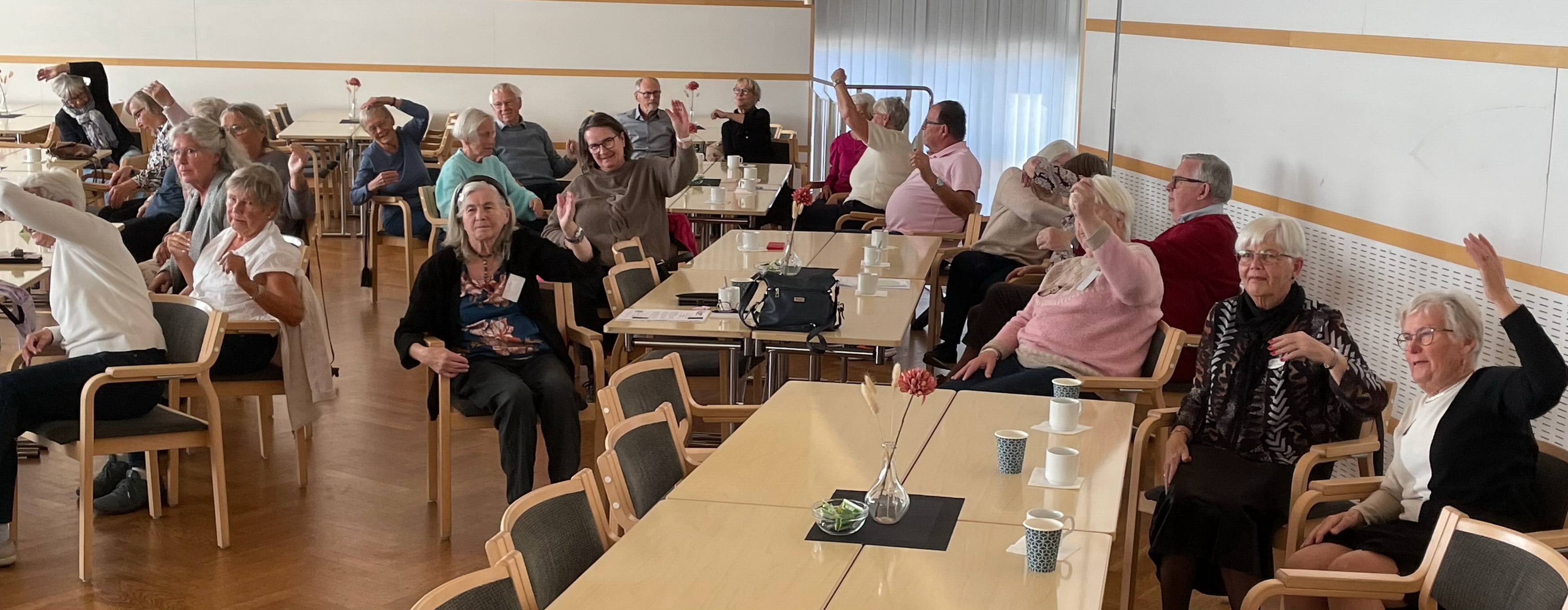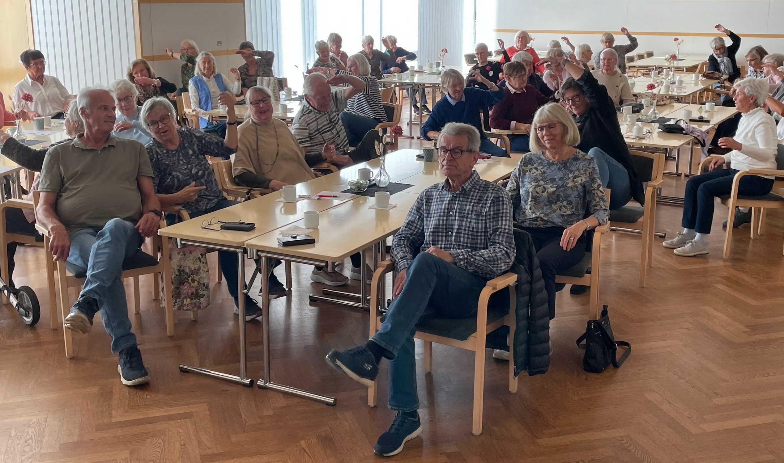 SPF Seniorerna Varbergs medlemsträff på onsdagen bjöd på sedvanlig information och även en överraskning i form av stolsgympa, som leddes galant av Britt-Marie Anderzon Sjöman.