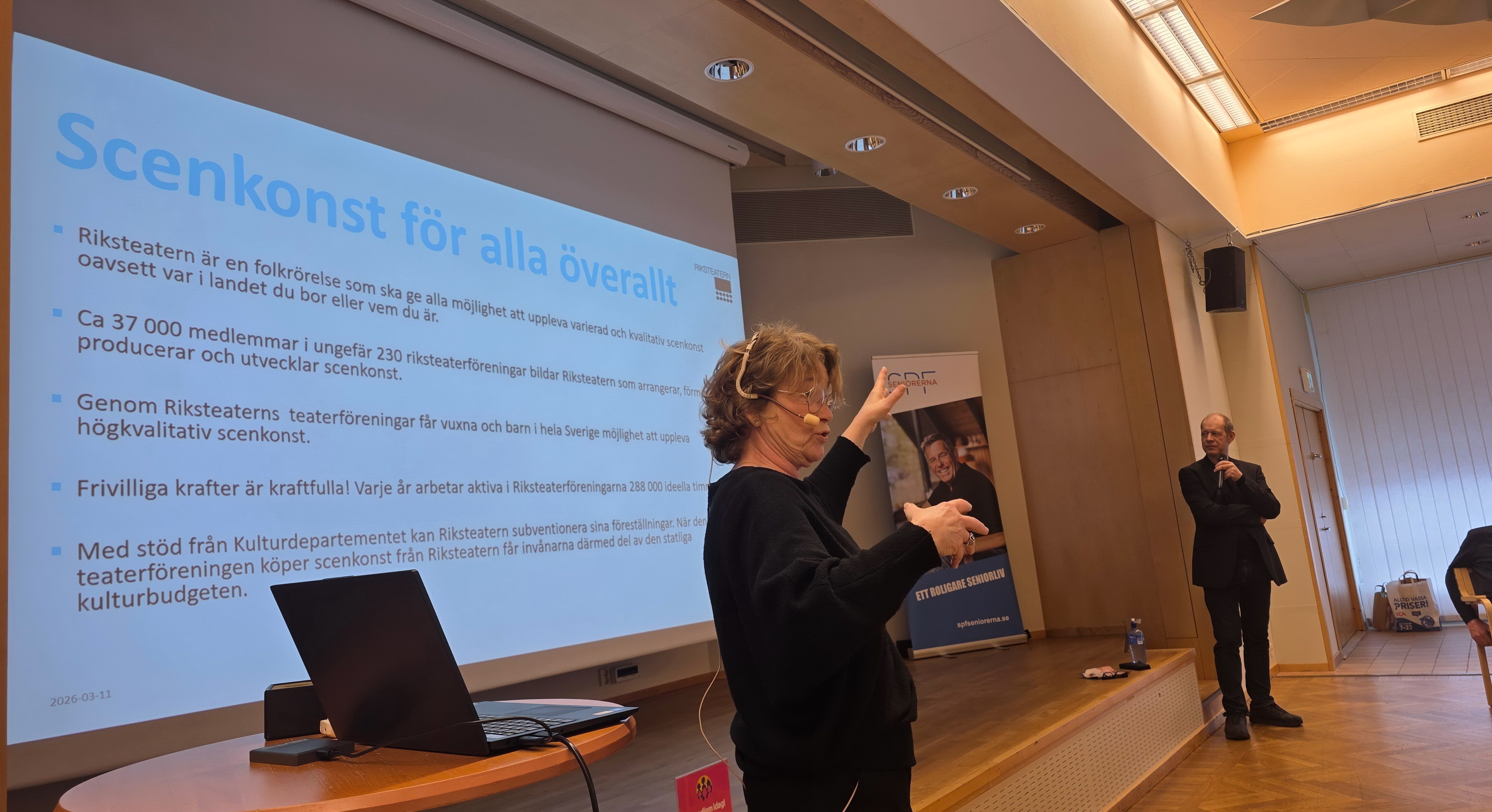 Varbergs Riksteaterförening presenterade sin föreningen och vilket stort utbud som kommer att genomföras i Varberg under första halvåret, dels på teatern och även på komedianten.