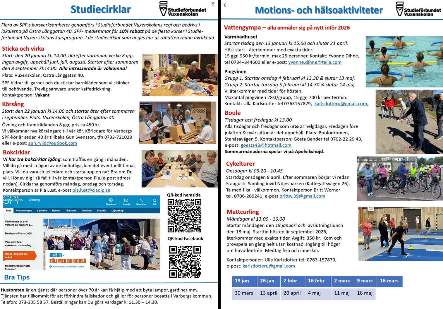 Förändringar i programmet kan komma att meddelas på medlemsmöten, hemsida, Facebook eller direkt via akuell aktivitetsledare/reseledare.