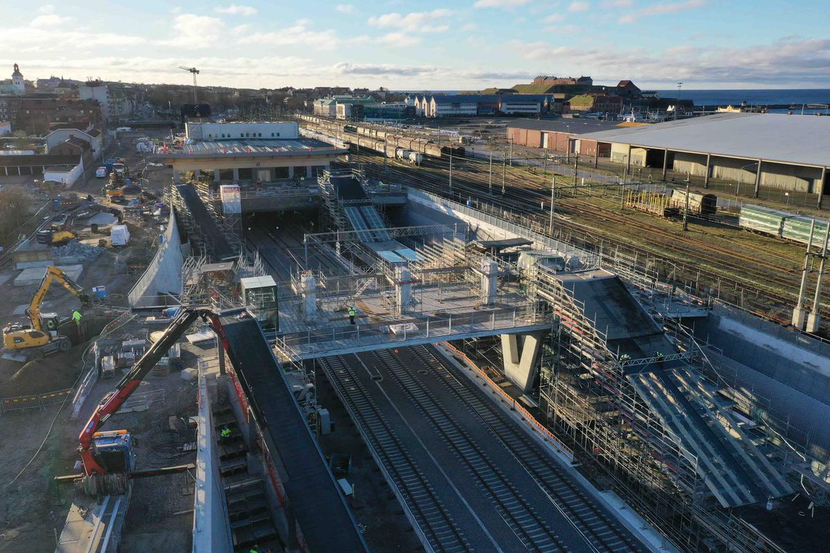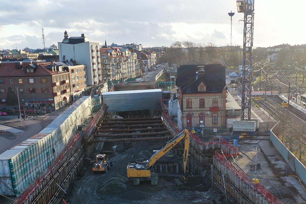 I området ovan betongtunneln är det nu fullt fokus på Jernhusens arbete med den nya stationen och Varbergs kommuns arbeten med stationsområdet.