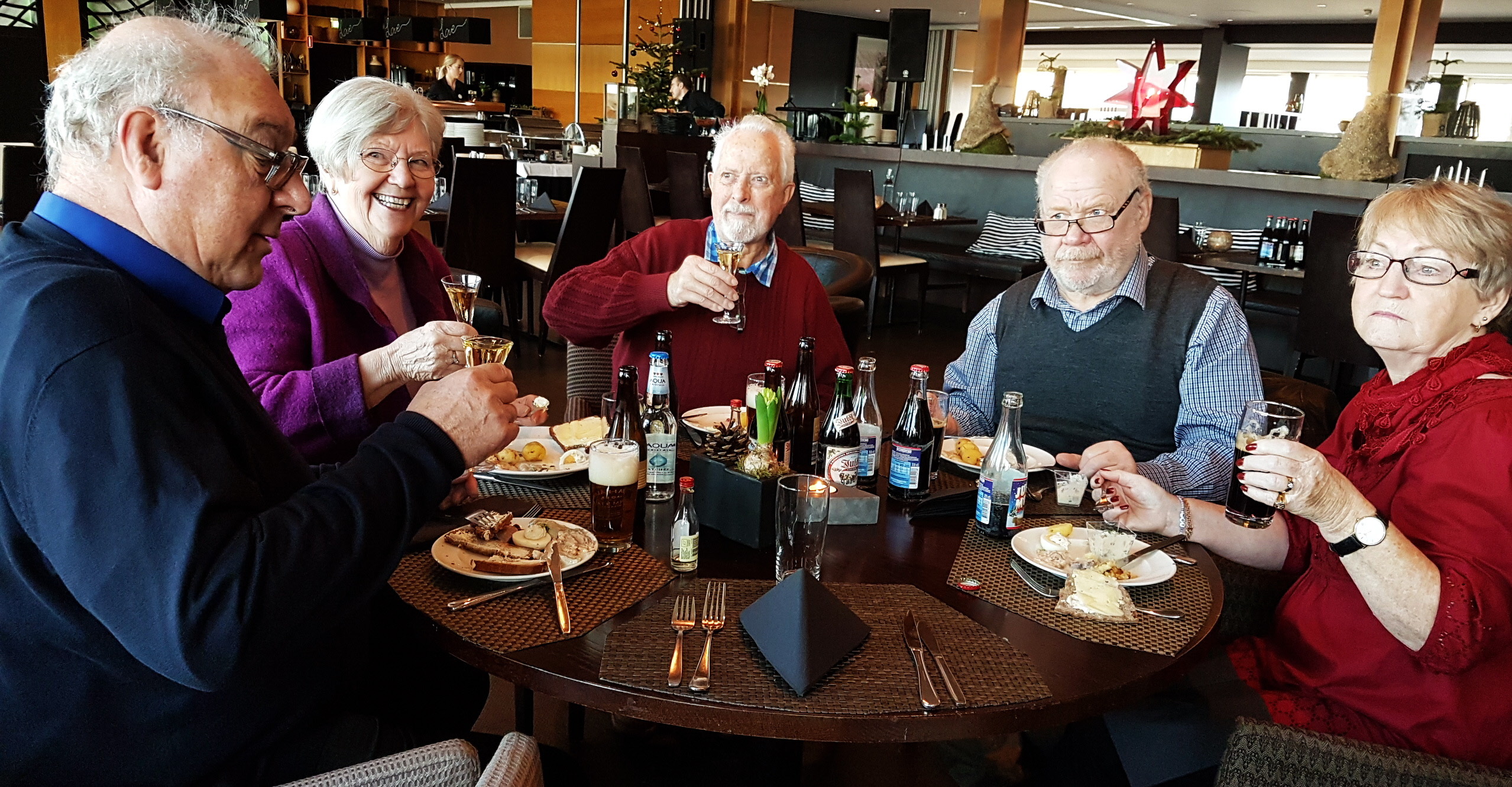 Vi började med glöggmingel för att därefter fortsätta med julmaten som var mer ett julbord än en jullunch. Mycket och god mat intogs med fin havsutsikt - några av oss kompletterade med snaps till sillen. Fler foto finns i Bildgalleriet.