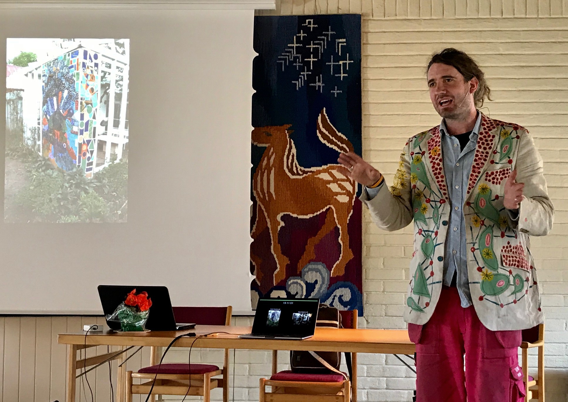 Peter Bengtsson berättade med hjälp av ett bildspel om sin kreativa trädgård. Trädgården hade mängder av blommor, gamla bilar fyllda med blommor, en flygel med blommor, plastmattor, allt för att förgylla trädgården.
