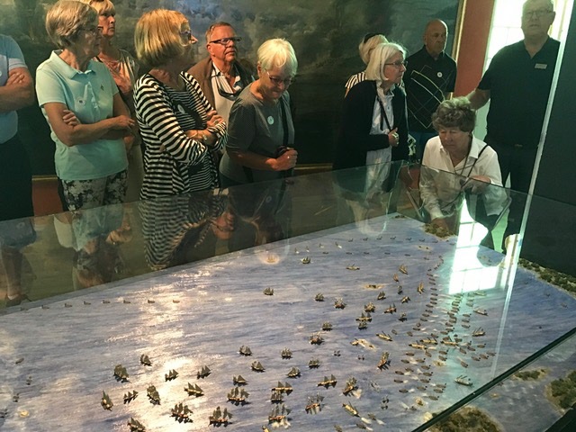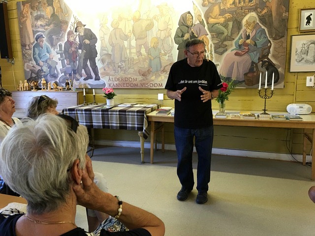 Hemresan fjärde dagen innehåll viltsafari bland visenter, hjortar och vildsvin på Erikstad. Vi fick se alla djuren under vår tur och en fin överblick över de röda näckrosorna, som finns där i stor mångfald. Sista stopp var en intressant föreläsning om Harry Martinsson och Per Edvin Salje vid besök på Jämshögs Hembygdsgård som har intressanta samlingar från författarlandet.