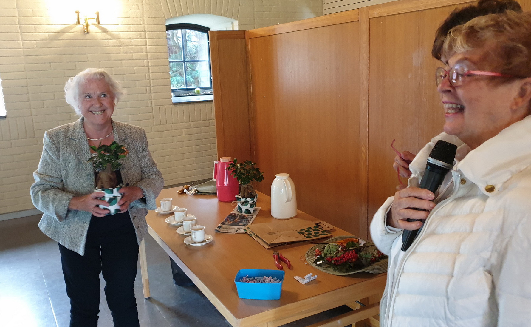 Efter konsumentupplysningen smakade det gott med kaffe och smörgås. Kerstin förrättade lotteriet, som vinster var det vitt vin inköpt på vinresan till Moseldalen,