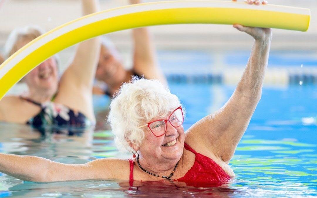 Vattengymnastik på badhuset Pingvinen i Varberg.