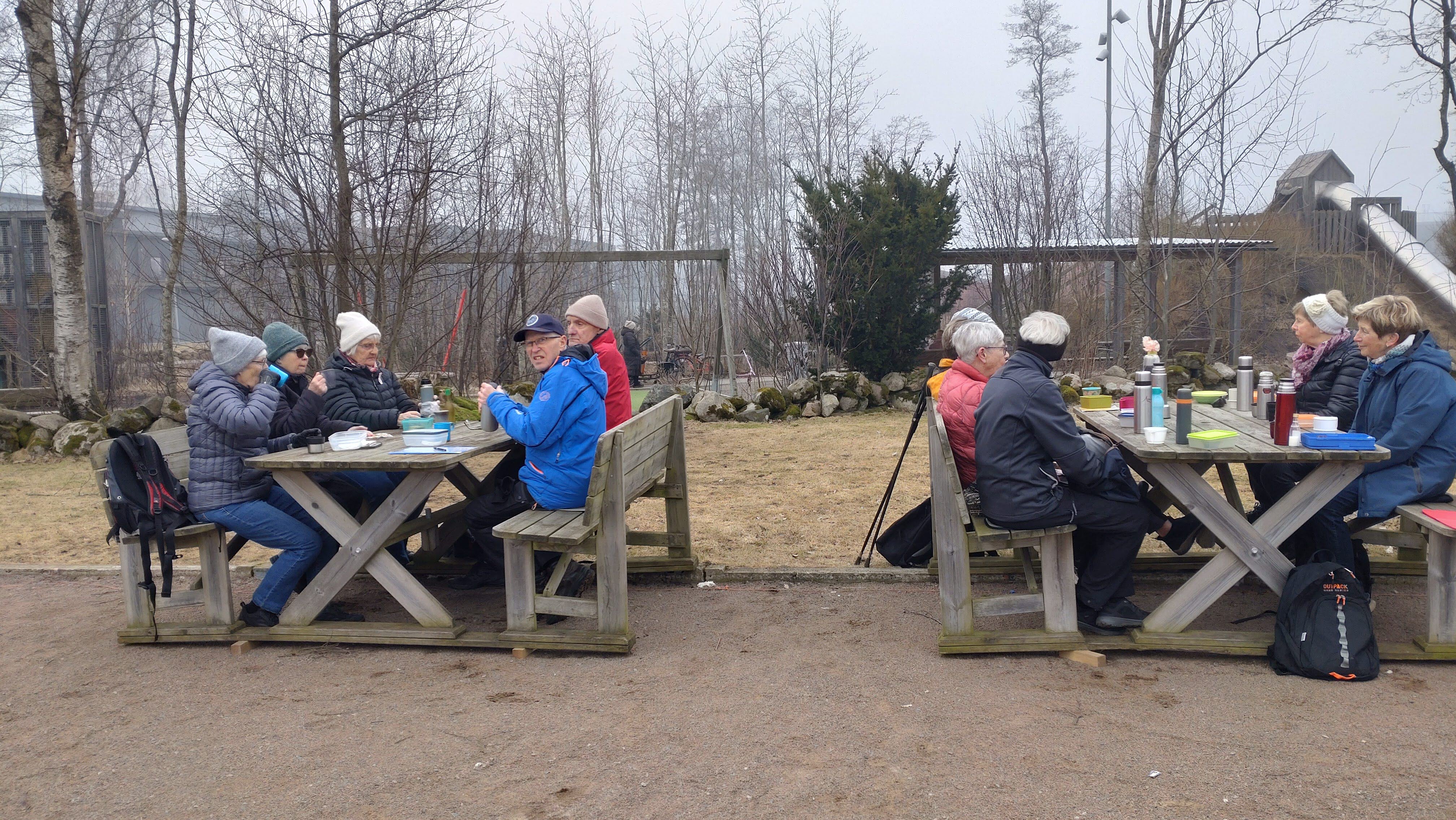 Idag var vi 12 deltagare som trotsade vädrets makter med friska vindar. Efter att det tidigare under dagen regnat höll det emellertid upp under promenaden som blev cirka 4 km lång. Det var en fin runda i världsarvsbygd med Grimtunet som medelpunkt för dagen. Avslutningsvis satt det fint med medhavd fika inne i klubbstugan. Se bilder