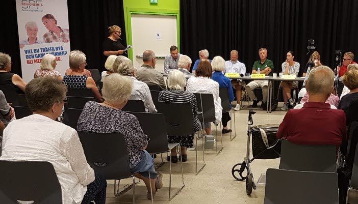 10 lokala partier fanns på plats i panelen och räckte ivrigt upp händerna i syfte att få ordet. Linda Thulin var moderator. En grupp från SPF Seniorerna, PRO och SKPF hade tillsammans med moderatorn snickrat ihop lämpliga frågeområden att belysa.