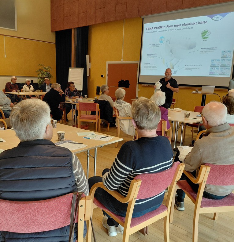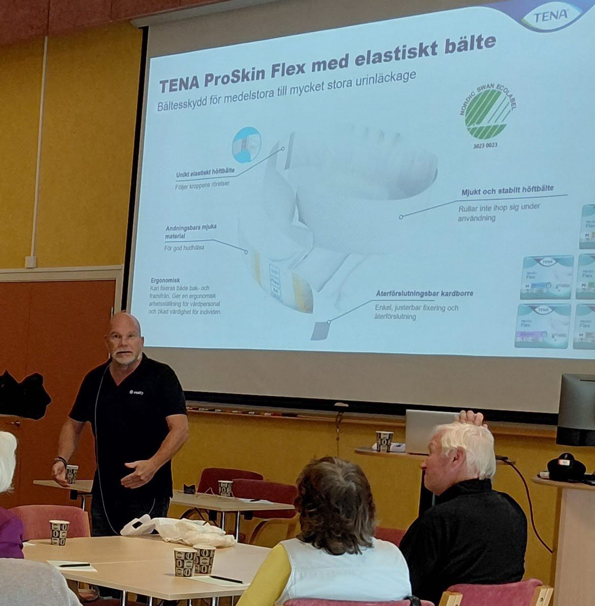 Efter lunch pratade Glenn Sjövall om inkontinens. De problem som detta medför och hur man med inkontinens skydd kan ge ett bättre liv.
