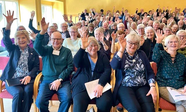 Fullsatt i Katrinebergs Folkhögskolas aula. Antal delegater på stämman 152.