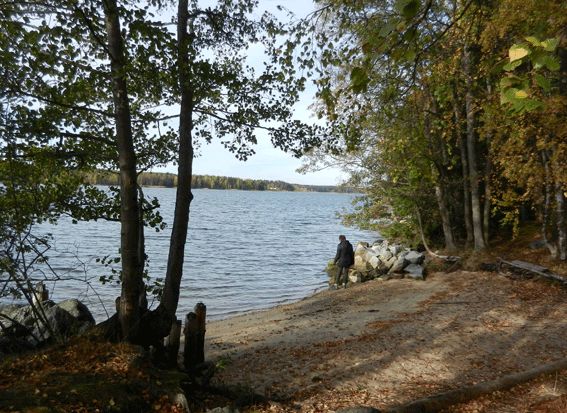 Han berättade om ett självförsörjande samhälle utan vägförbindelse, enda kontakten med omvärlden var sjövägen. Det var lite blåsigt men vid Simpvikens strand var det lä och skönt så där blev det fikapaus.
