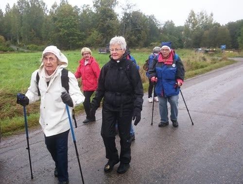 Det var mulet och fuktigt men uppehåll ända tills vi fikat färdigt och skulle till att gå tillbaka , då kom det ett litet duggregn.