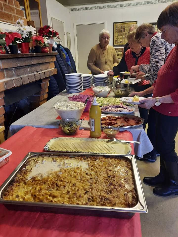 Det blev en helfestlig julfest när SPF Seniorerna Arbrå hade sin årsavslutning den 3 december med tema "Julstjärnan". Ett 50-tal gäster samlades i Scoutstugan vid Fornhemmet och bidrog till härlig julstämning i den vackert pyntade lokalen. Även solen hade valt att stråla denna dag och glittrade i nyfallen snö. De uppskattade Bröderna Bertilsson, Lasse och Pelle, stod för underhållningen den här eftermiddagen och bjöd på ett varierat program med egen proffsig repertoar varvad med gamla kända julsånger ur allsångshäftena som vår ordförande Marjatta Onkenhout och Barbro Englund sammanställt. Efter att Marjatta hälsat välkommen och första allsången rivits av, med välbehövlig hjälp från musikanterna, fick vi ta för oss av den goda julmaten från Ingvarssons i Vallsta. Kökspersonalen med Lena, Birgitta och Eva levererade som alltid till 100%. Därefter njöt vi av mera musik och sjöng flera allsånger. Under samtal kring borden framkom bl a att söndagsträffarna på Corner är populära och många äter söndagsmiddagen där eller tar bara något att dricka. Särskilt efter 16-17-tiden kan man vara tämligen säker på att träffa på någon bekant. Br. Bertilsson fick önskemål om att spela "Nu tändas åter ljusen..." och en annan nöjesprofil som satt i publiken, Anders Callmyr, övertalades att sjunga den, till allas jubel. Marjatta och Barbro bjöd som alltid mycket på sig själva. Några brutna ben i överarmen och en mitella hindrade inte Marjatta från att äntra ett bord och agera i enlighet med Barbros uppläsning av en gammal mexikansk berättelse om hur "Den heliga nattens blomma " uppstod genom en fattig flickas gåva till jesusbarnet och hur den idag blev vår populära julstjärna. Till lotteriet hade som brukligt fina vinster både tillverkats och skänkts av olika medlemmar men även Ica Supermarket i Arbrå hade generöst bidragit med olika gåvor. Efter kaffe och kaka läste Barbro Sonja Hägers dikt "juljäkt", en liten tankeställare. Medan mörkret föll där utanför, sjöng alla "We wish you a merry Christmas" innan Lasse och Pelle avslutade med mera stämningsfull musik. Och så var ännu en rolig eftermiddag med SPF I Arbrå slut.