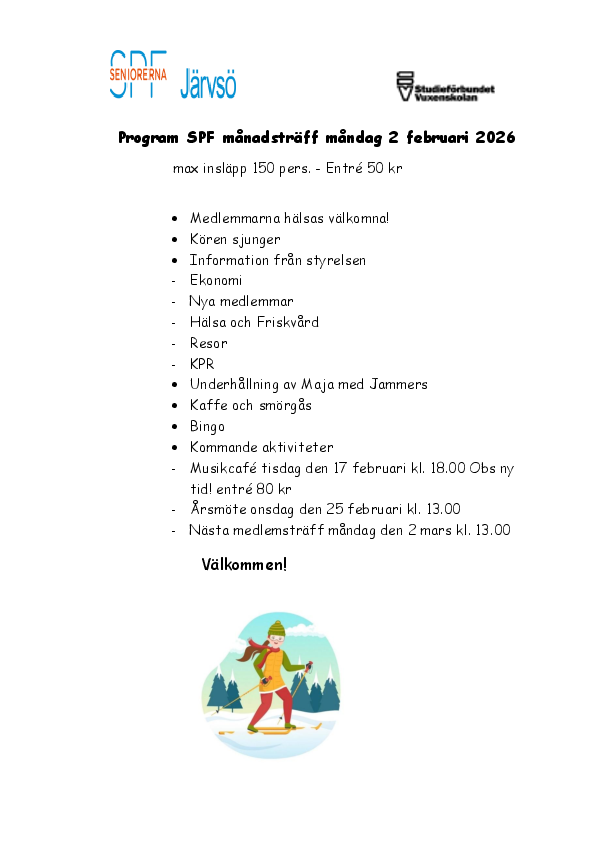 Månadsträff 2 februari 13.00