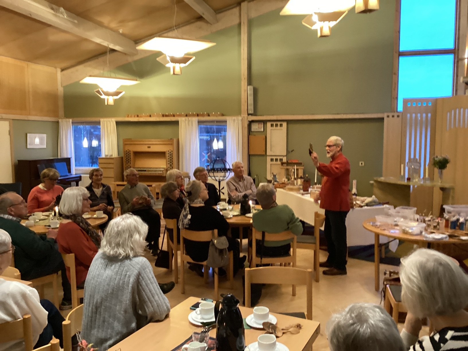 Film från SPF spelas under fikat och vi informerar om appen SPF Seniorerna.
