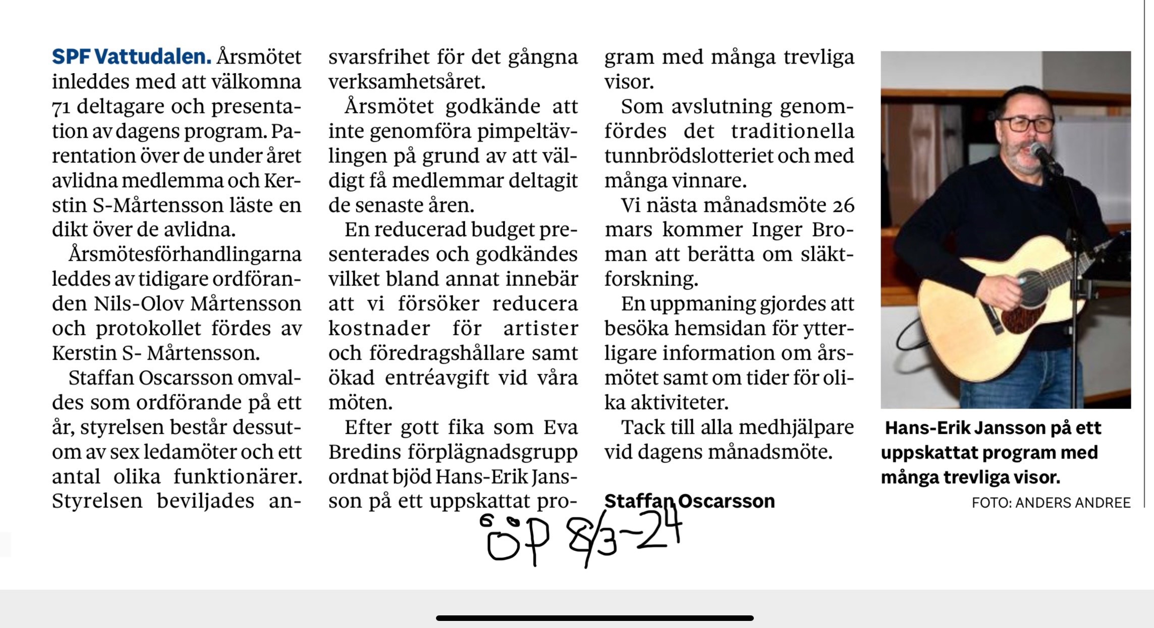 28 mars Vår medlem Knut Klefbom gjorde en tillbakablick