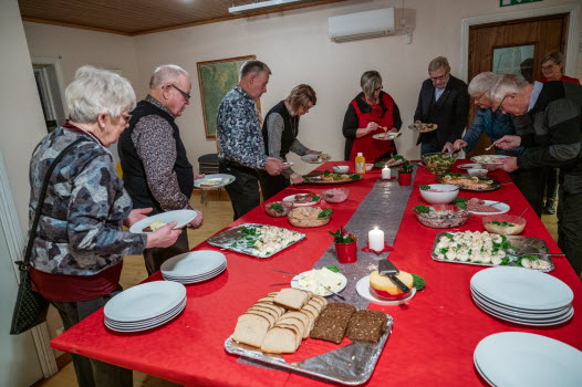 Julfest med god mat från Smålandsstenar. Sven Jarl berättade om jultraditioner och spelade till julsånger. Ås-Dravö hjälpte till i köket.
