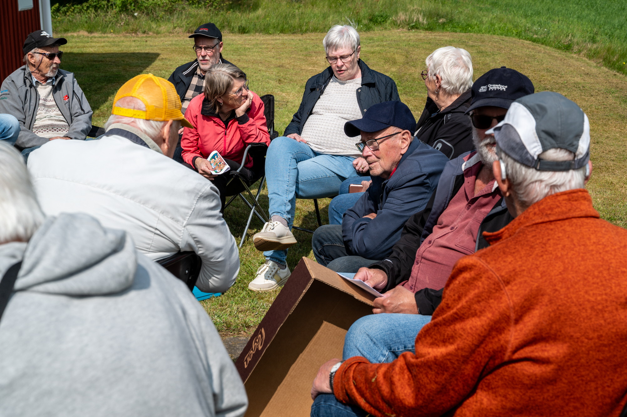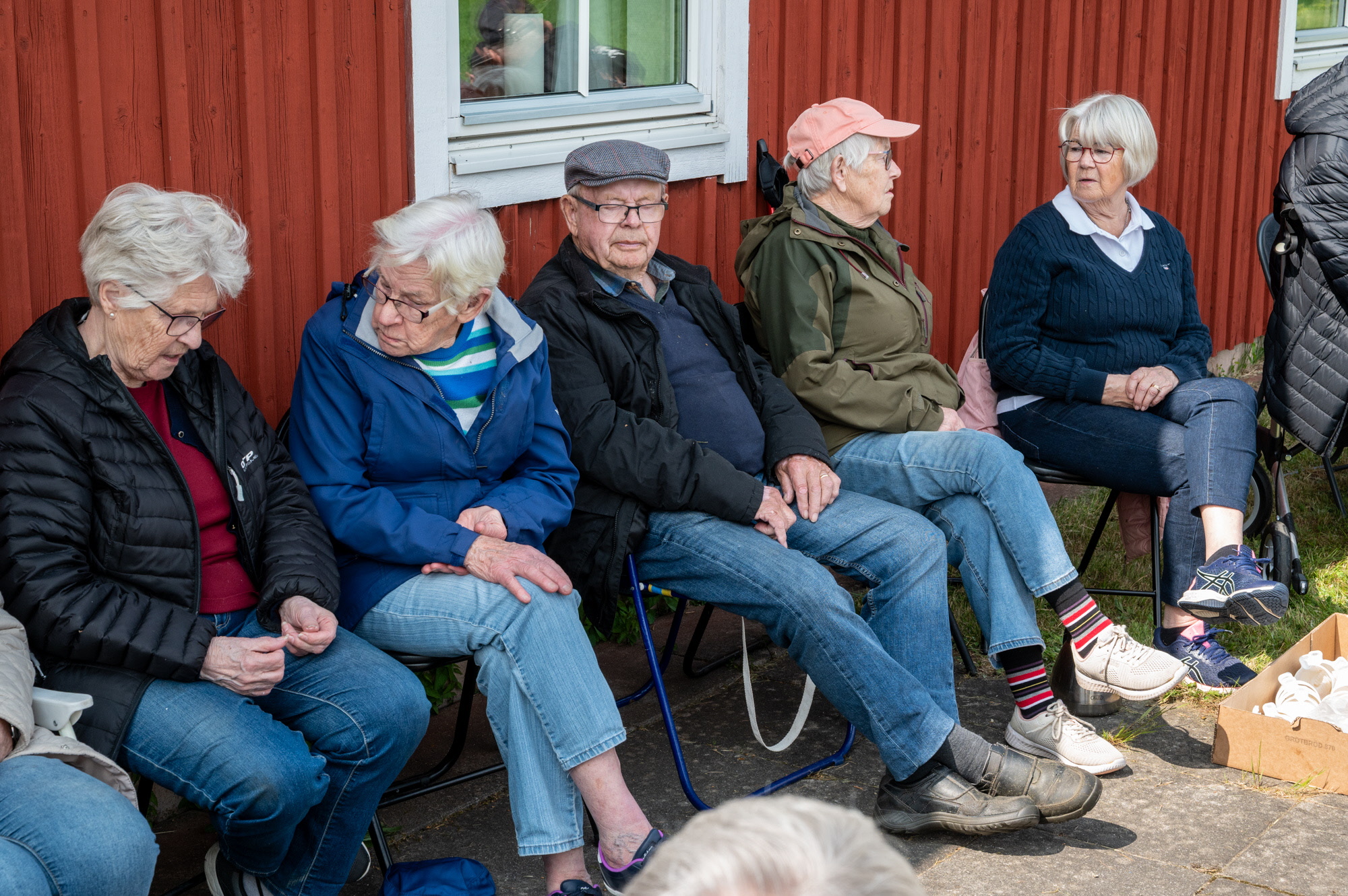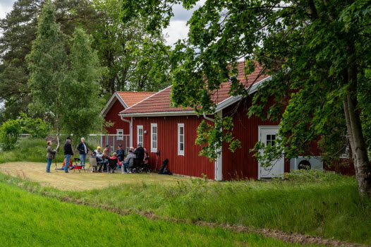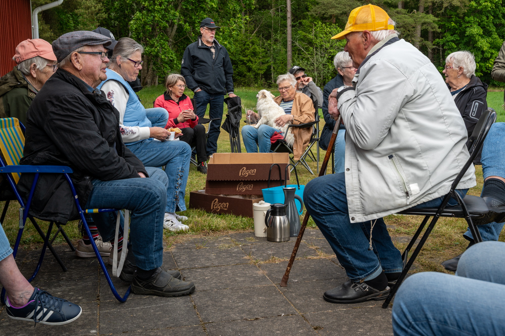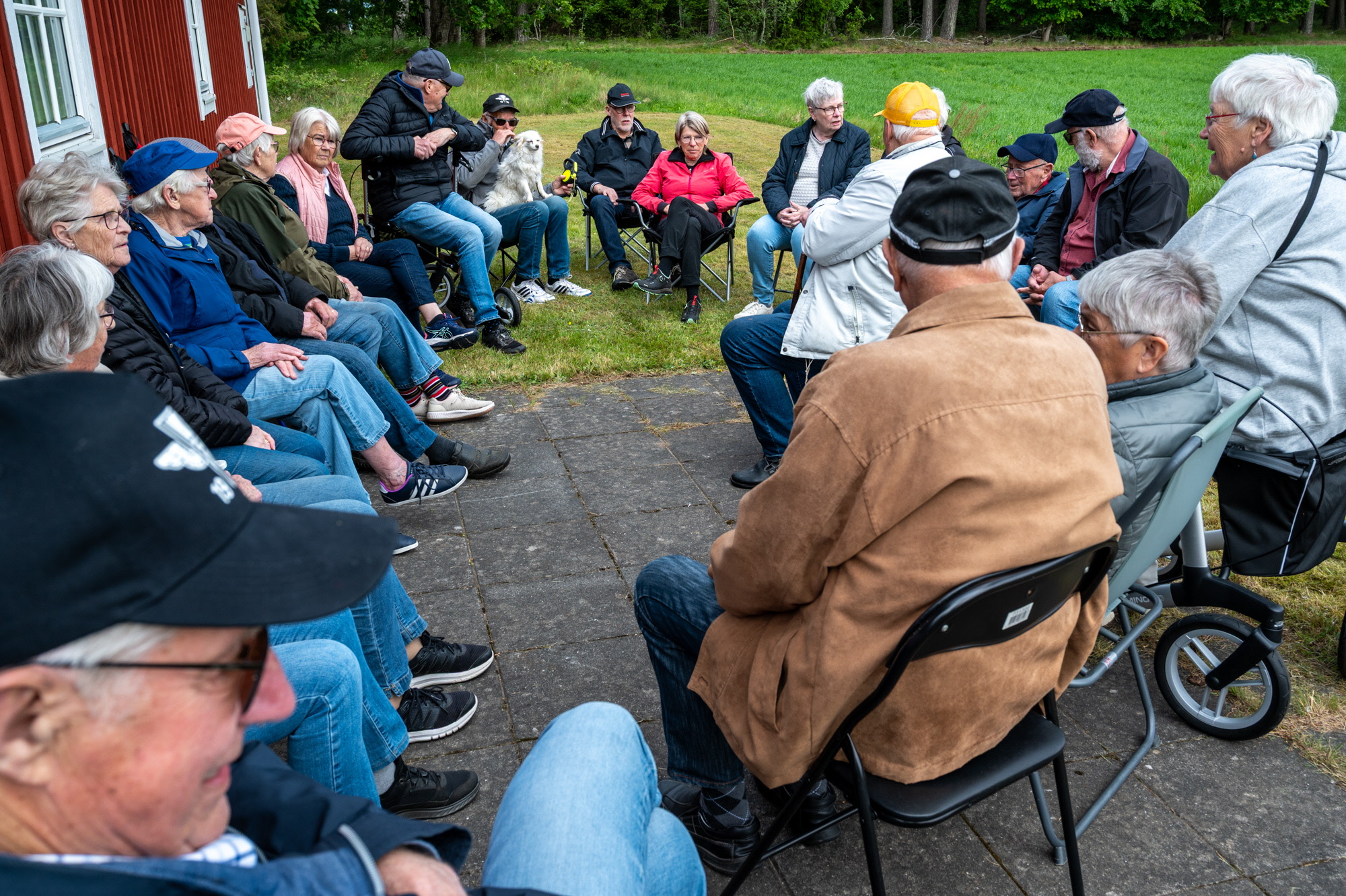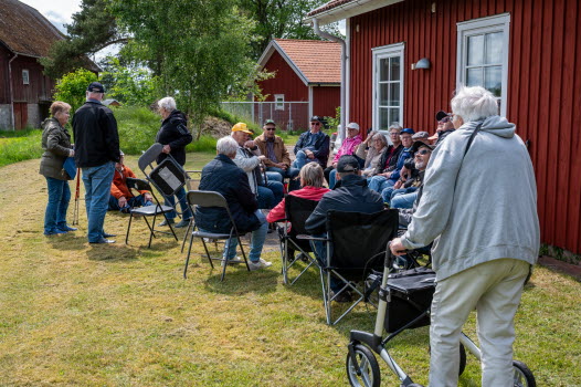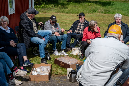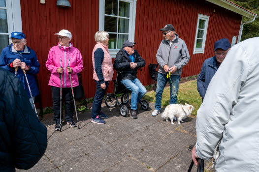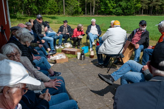Vi samlades vid Skoghem Draftinge. Dagen var blåsig så vi gick rundan i skogsdungen bakom Skoghem. SPF-seniorerna bjöd på kaffe med wienerbröd i lä bakom Skoghem.