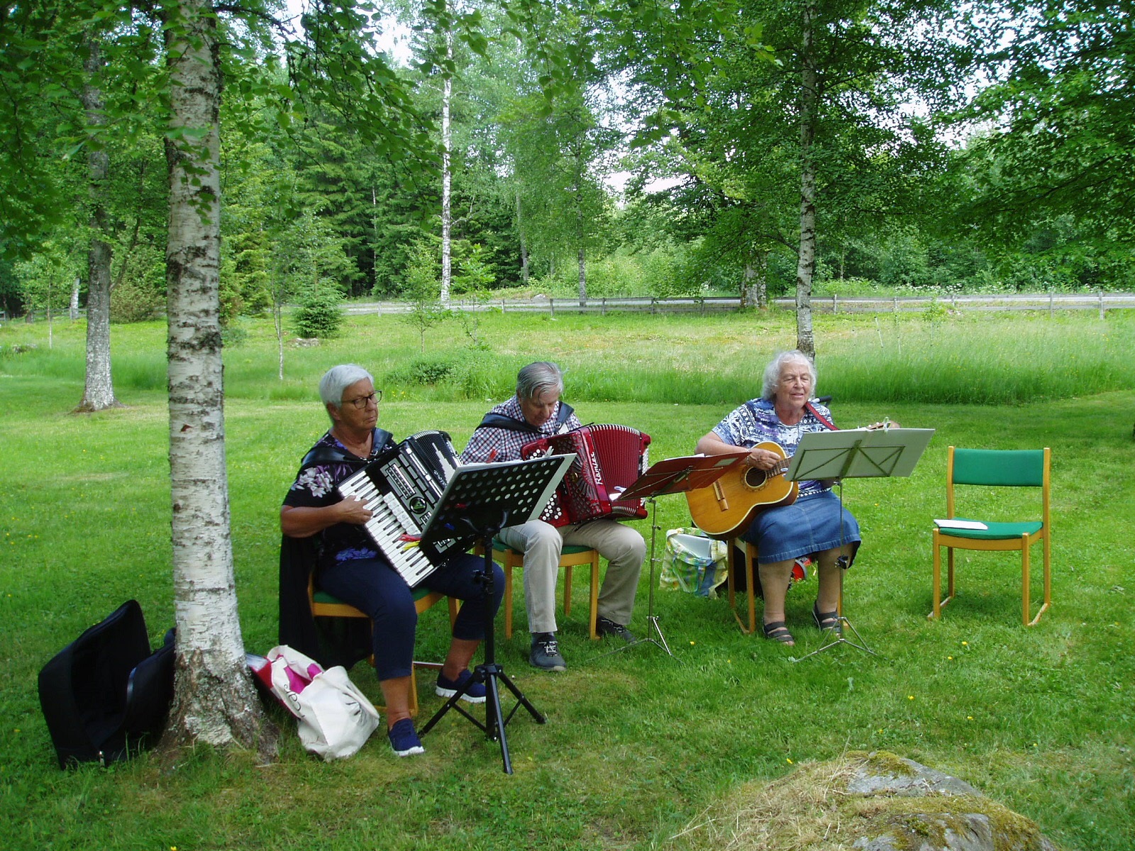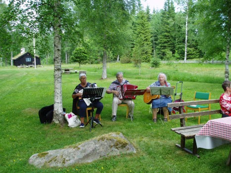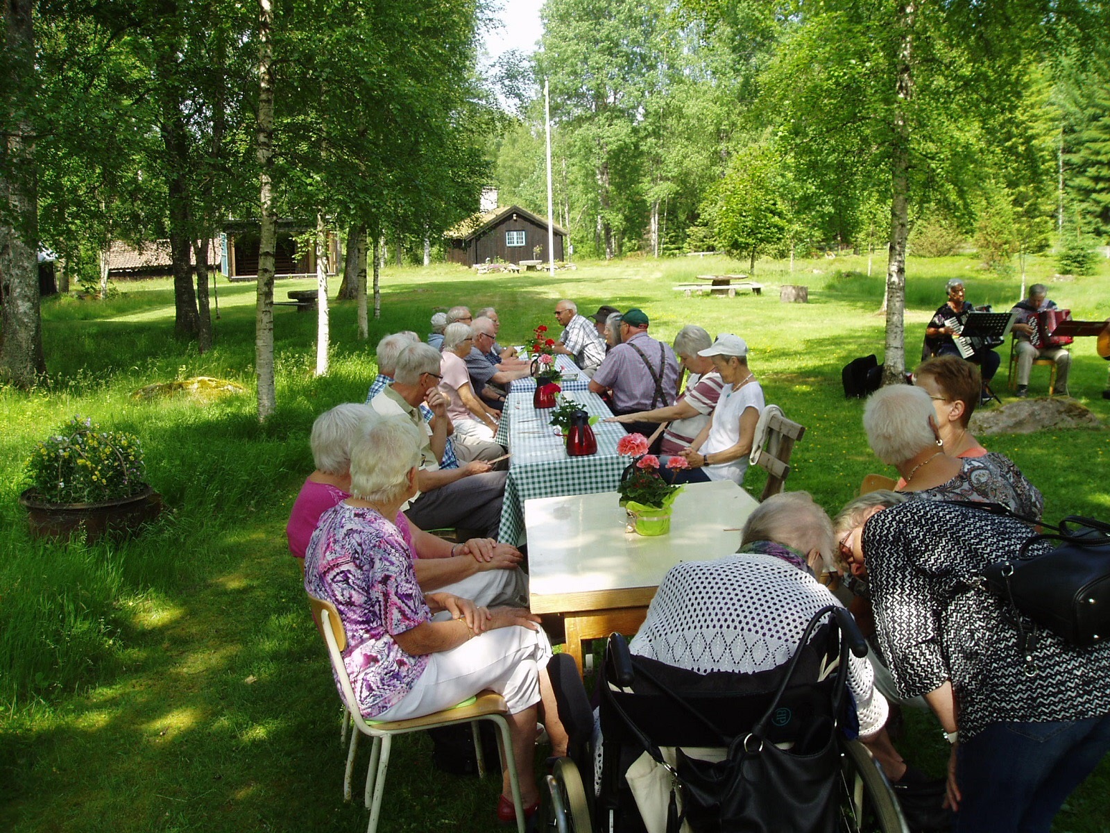 Fyrtiofem SPF:are kom för att avnjuta det fina vädret med underhållning av både fågelsång och live musik, kaffe med våfflor och diverse tillbehör serverades.