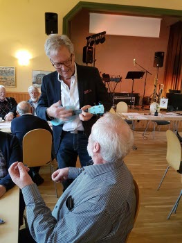 Det var god stämning i förbundsgården när Kennet Holmström sjöng och spelade Sven-Ingvars låtar och andra gamla godingar, kaffe och semlor serverades i mellanakten, mötet avslutades med lotteridragning.