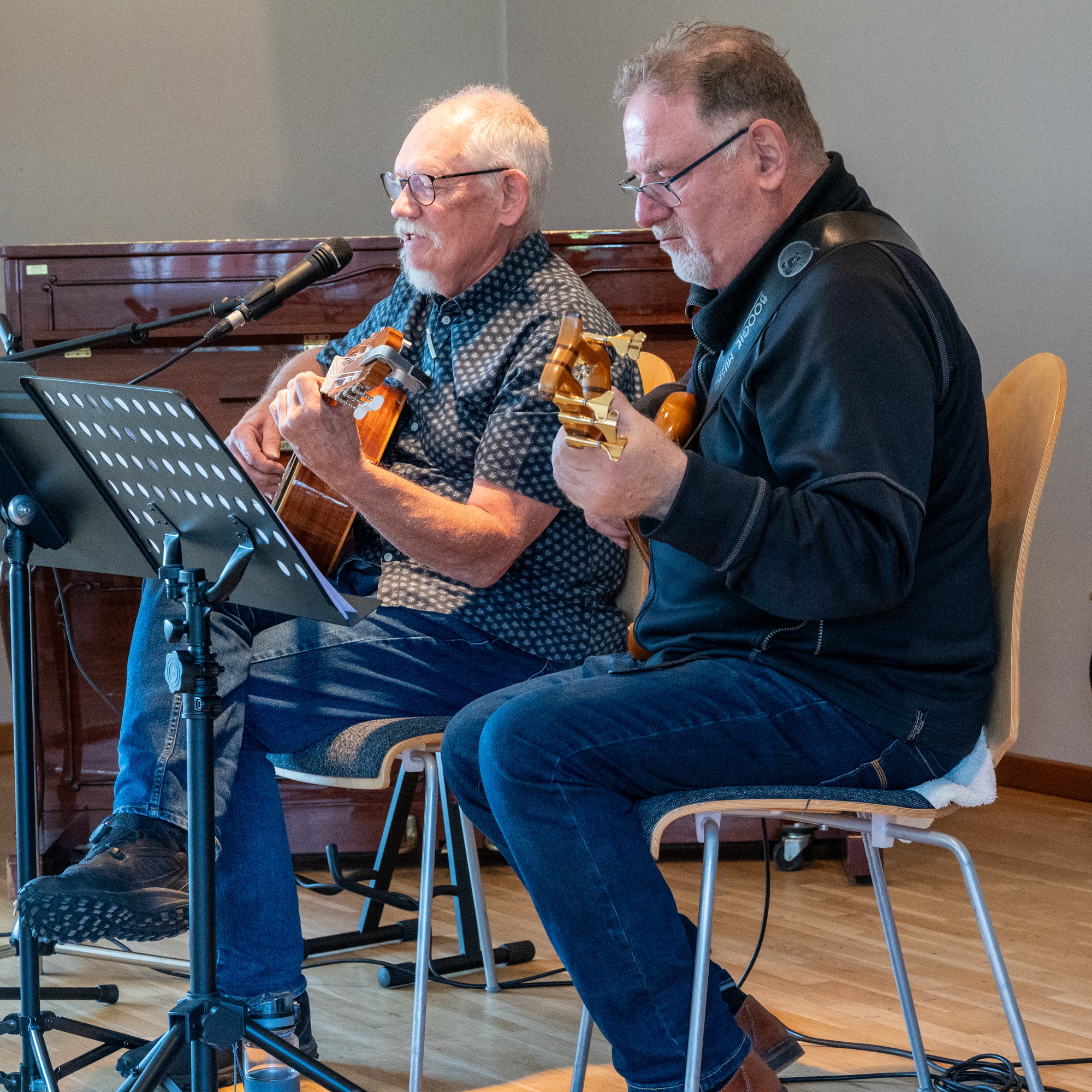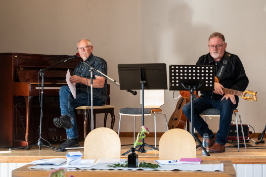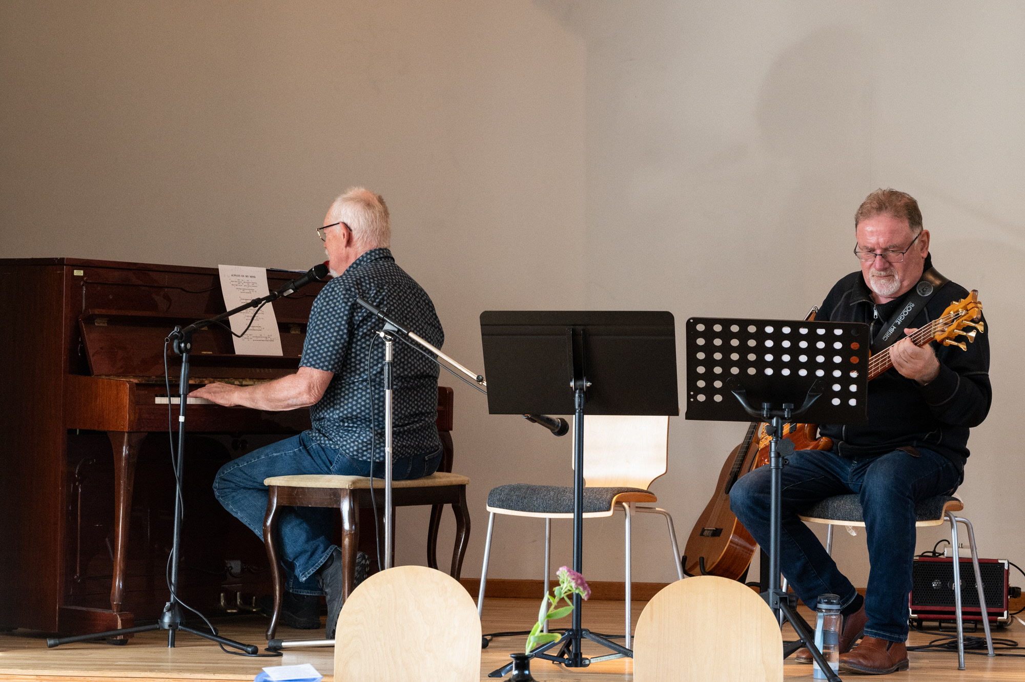 Under septembers månadsträff hade vi besök av Jan-Erik Norsveden och Gert-Ove Göransson som spelade och sjöng (Dan Andersson, Stefan Demert, Elvis).