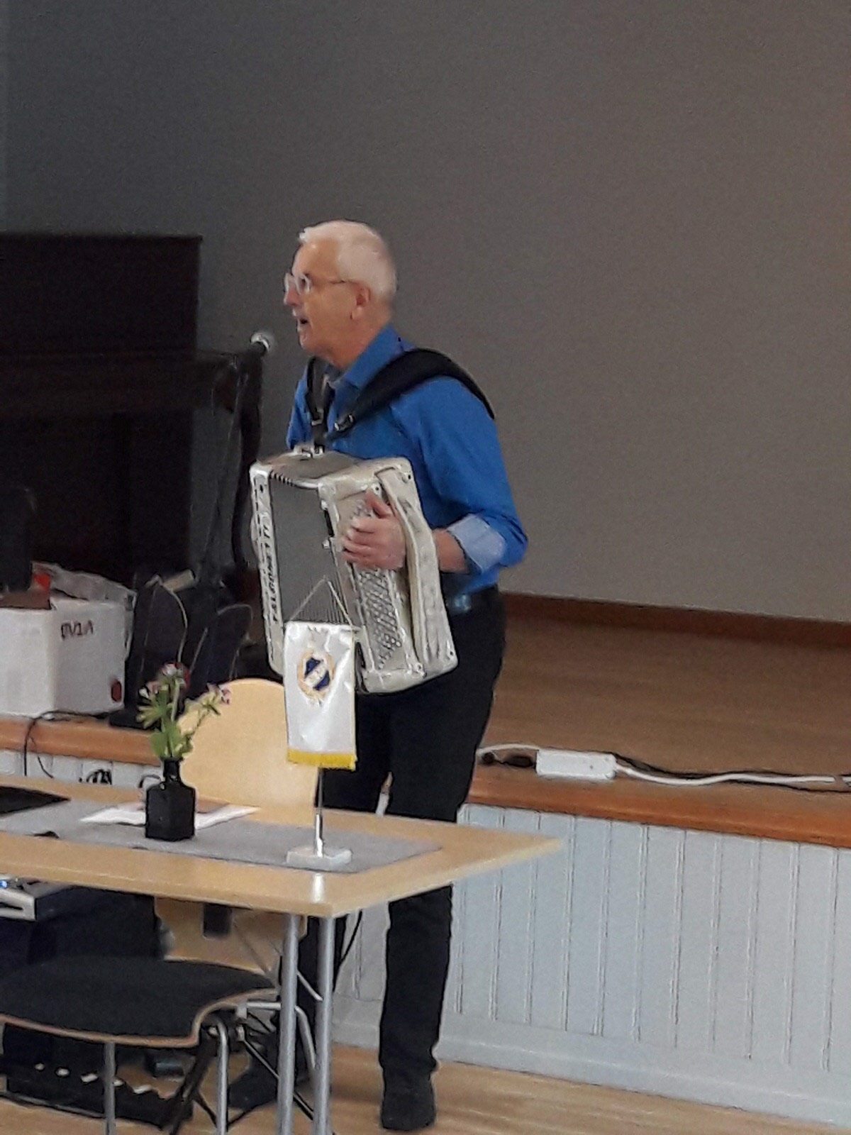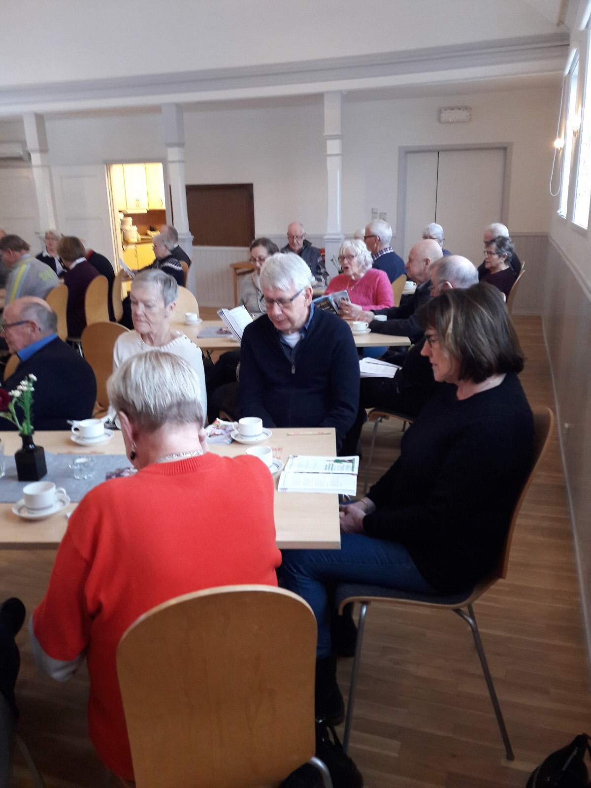 Det var stämningsfullt i den nymålade Förbundsgården när Bo Liljedal från Ullared höll allsång.