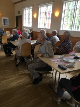 Underhållare var Vivian Nöjdh på höstens första månadsmötet. Nyligen fyllda 80 år blev Gunvor Rohdin uppvaktad med en blomma.
