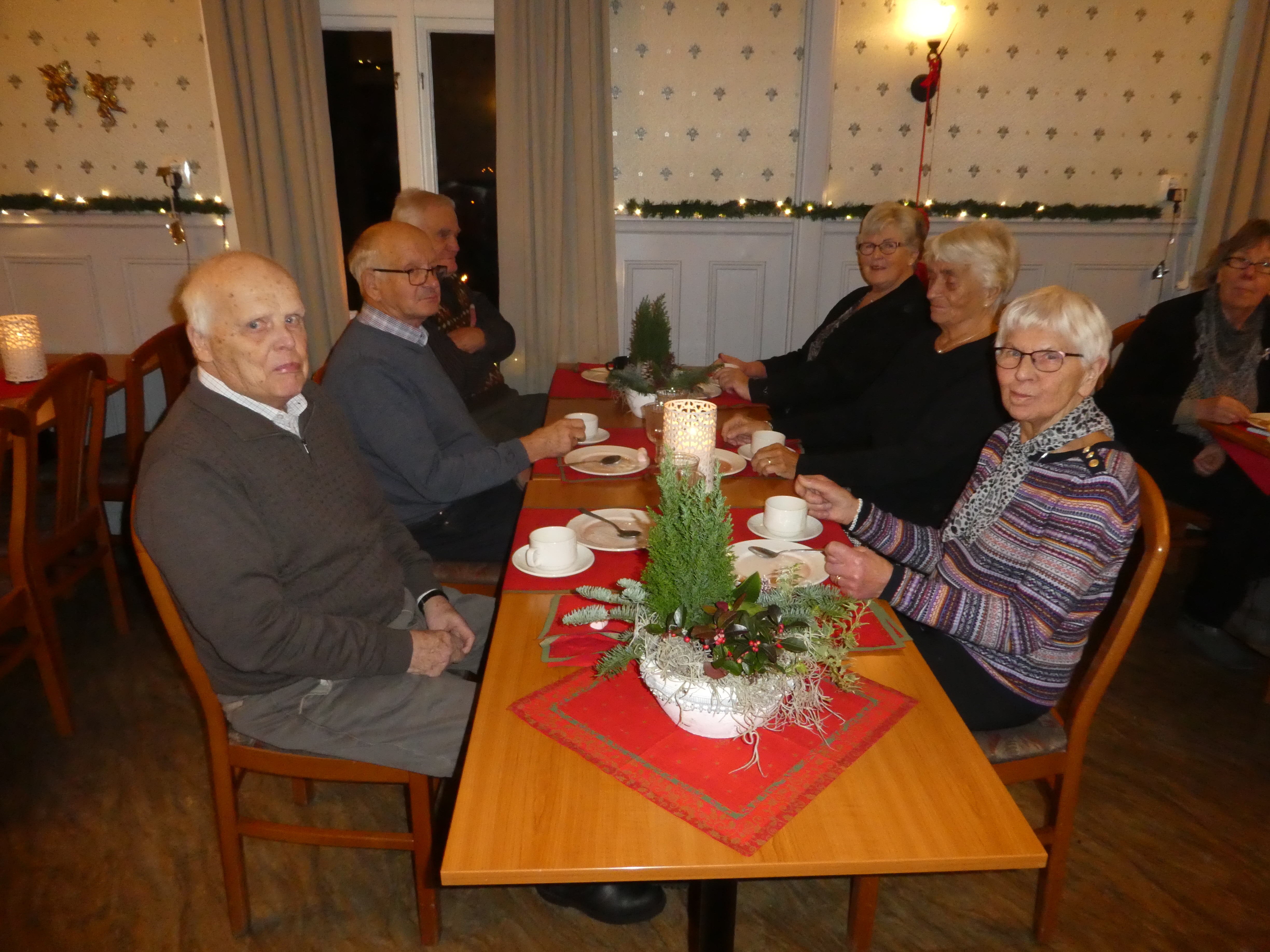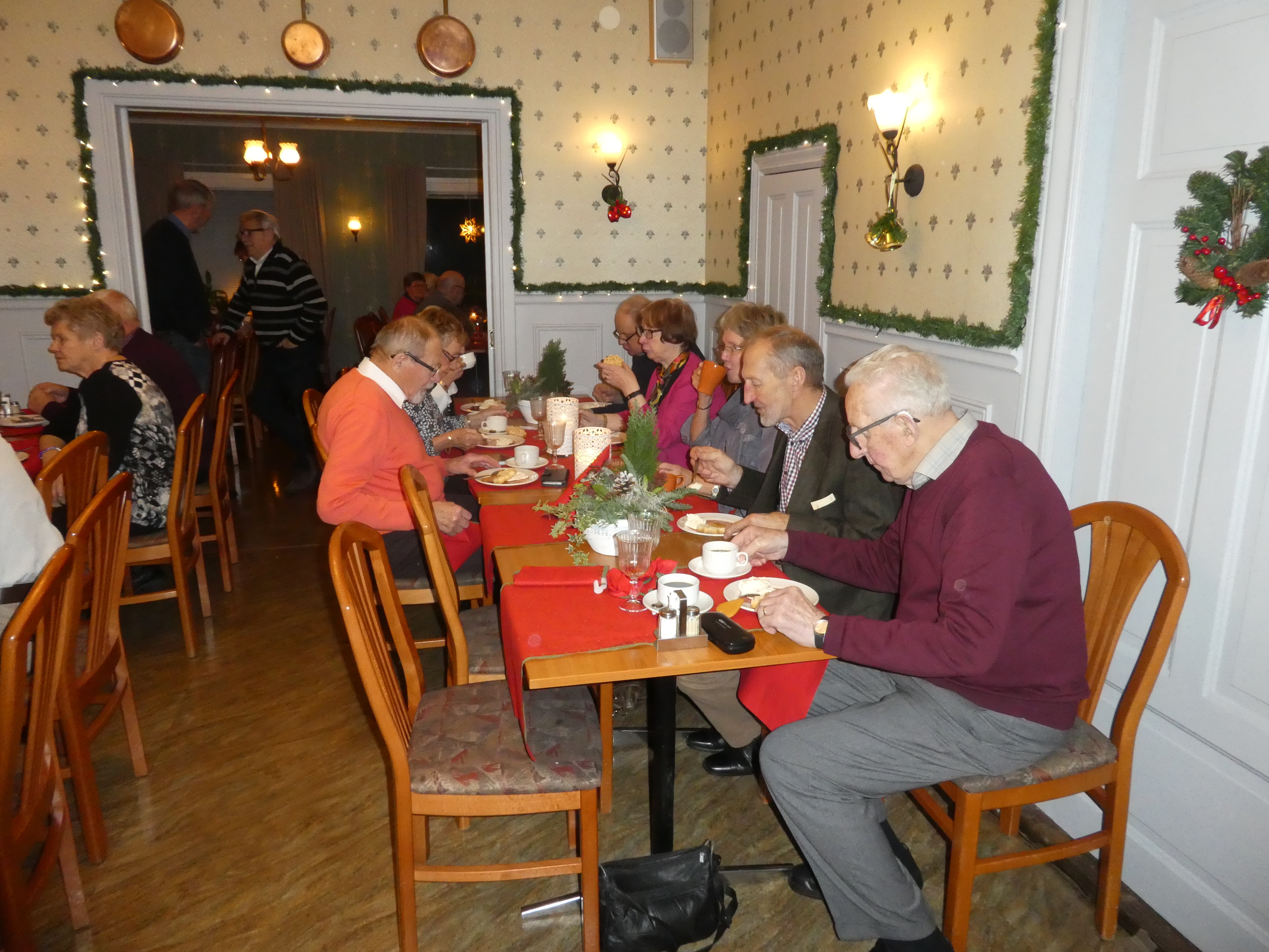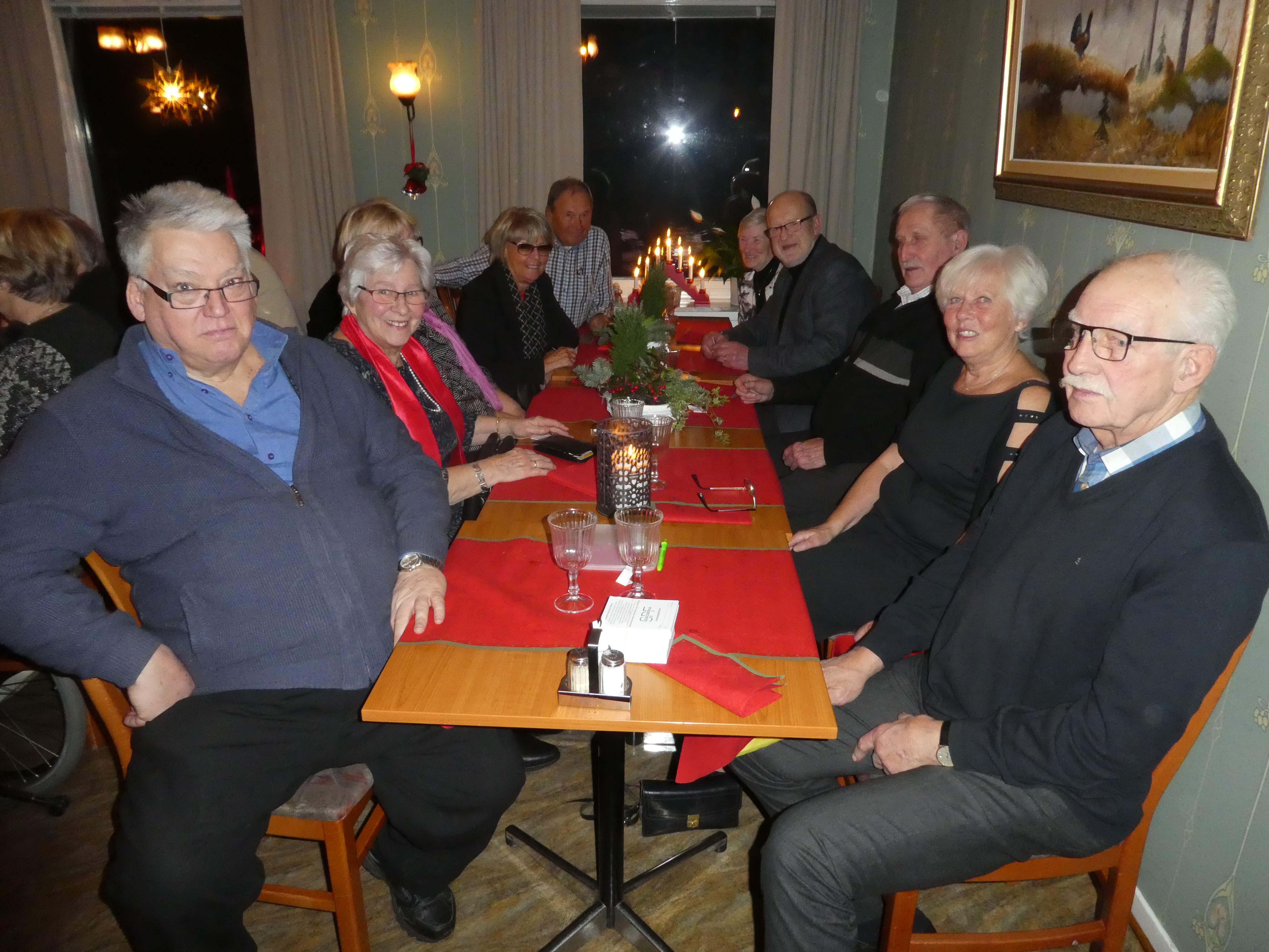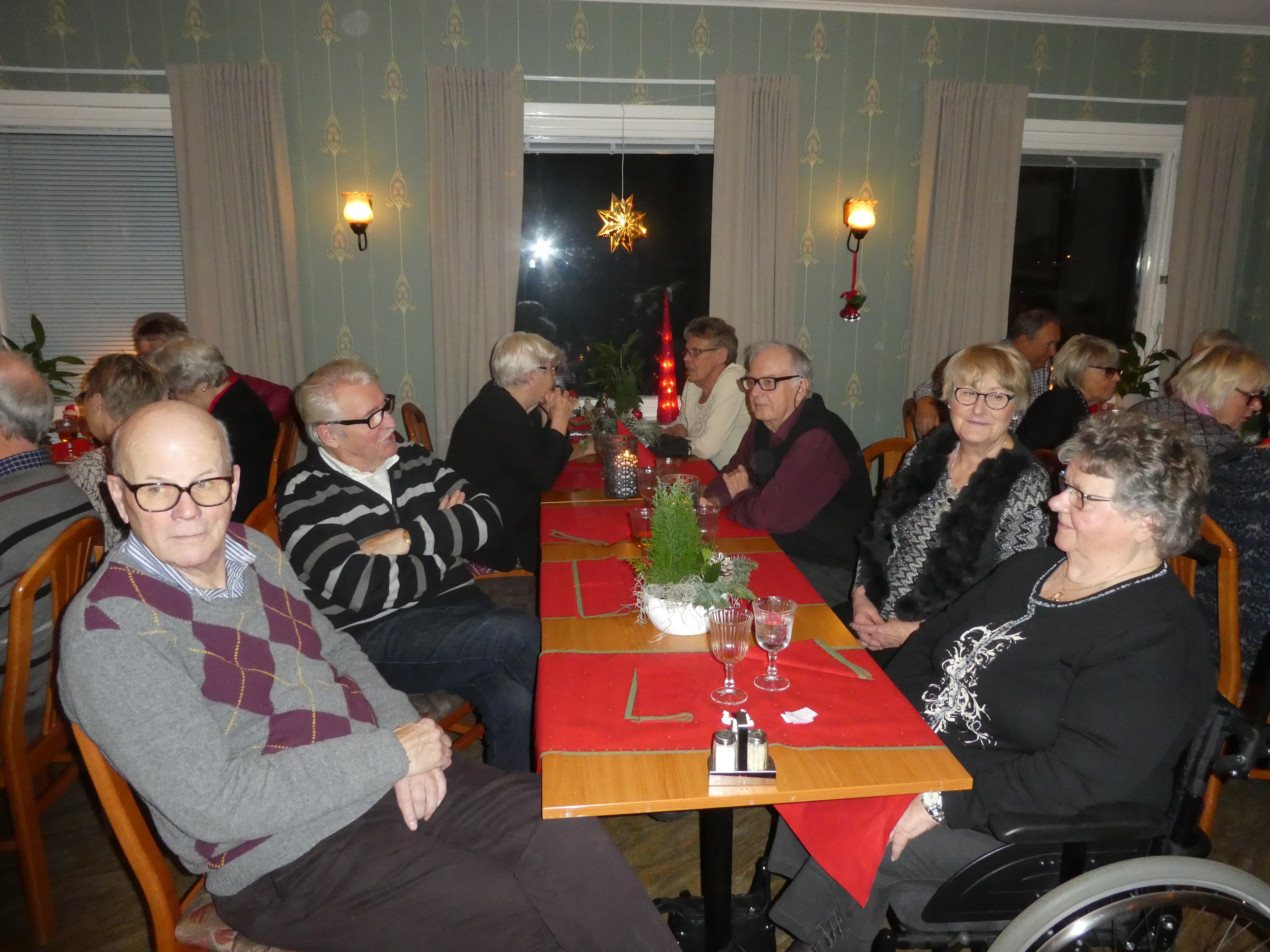 Ordföranden Leif Nygren hälsade 57 gäster välkomna till ett rikligt och välsmakande julbord. Det förekom också julsånger till Leifs ackompanjemang på dragspel. 2017-12-05 HJ