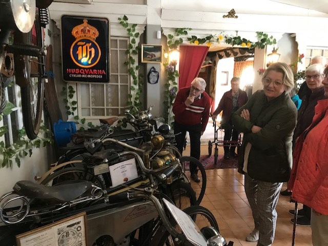 Bland tvåhjulingarna tog Skaftarps-knarren hem dagens topphistoria. Den tillverkades i Skaftarp av bröderna Harry och Arvid Sandberg, i ett 40-tal exemplar även med gengasaggregat. Guiden berättar att en kille från Hordabygden köpte en sådan knarr och åkte till Stockholm fram och åter för att träffa en tjej. Ingen dålig prestation. Så fanns det andra prylar överallt, även leksaker i många skepnader, men den åldern har vi besökare passerat med råge!!!!