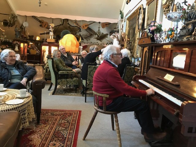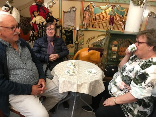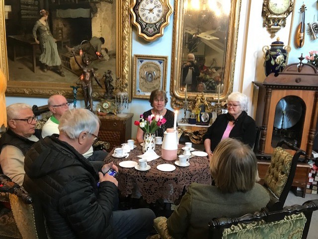 till vetekransarna som SPF bjöd på. I samband med detta spelade guiden på olika självspelande instrument. Det informerades om kommande bilrally den 9 maj. Efter fikat fick vi vandra runt på egen hand bland traktorer som var till åren komna, och mycket annat som var värt att titta på, så det tog en bra stund innan alla försvunnit från museet fullproppade med många fina minnen…..