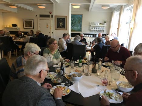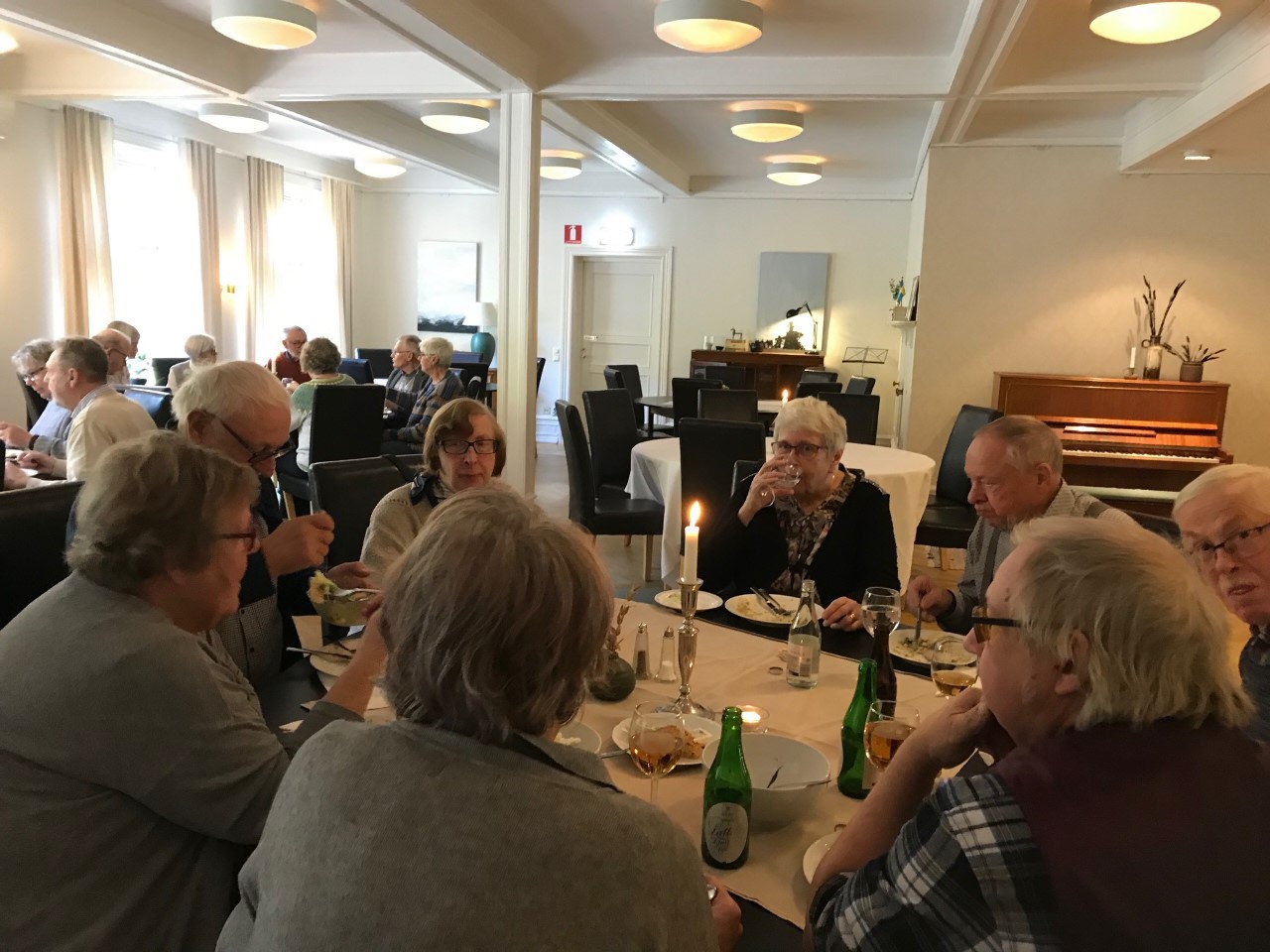 När man har vandrat runt en stund så blir man hungrig, så därför åkte vi till Spånhults Herrgård några kilometer från museet. Där intog vi en smaklig middag av hög kvalite och alla 24 blev mätta. Denna herrgårdsbyggnad uppfördes av Norrahammars bruks ägare och är ett uppskattat resmål än i dag. Efter info om kommande samlingar begav vi oss hem, mätta och belåtna av en lyckad utflykt, med förhoppning att den virrige reseledaren också hittade hem utan problem.