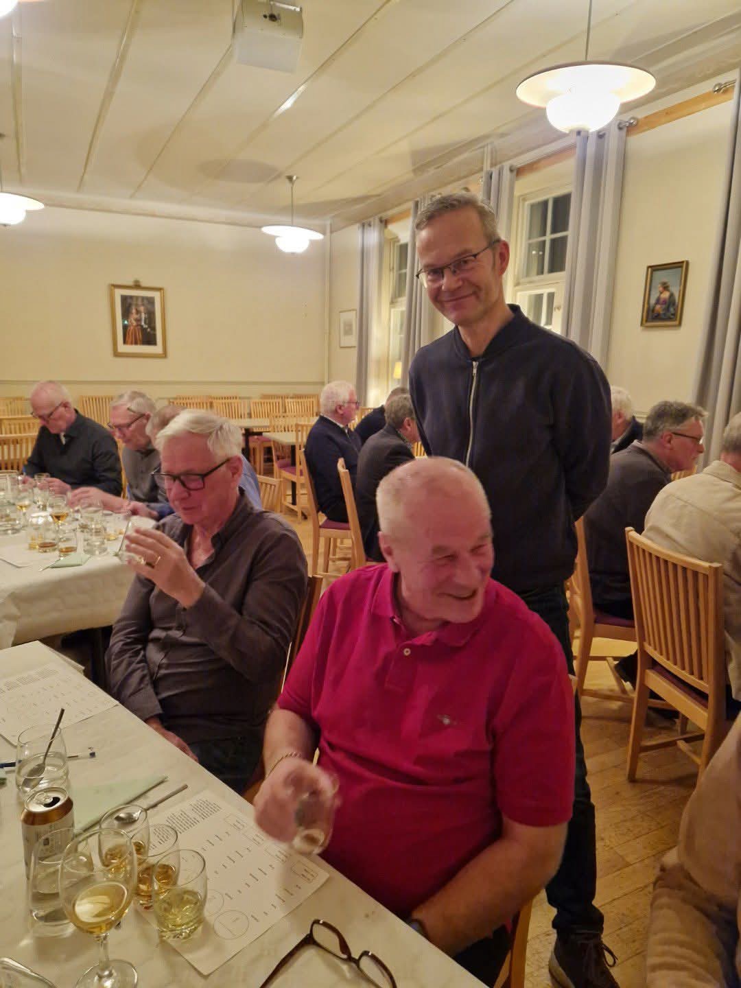 Anders Karlsson från Eksjö guidade oss föredömligt genom whiskyns historia samt beskrev hur tillverknings- och lagringsprocessen går till. Deltagarna hade många kluriga och intressanta whiskyfrågor som Anders besvarade med stort engagemang och kunnighet.