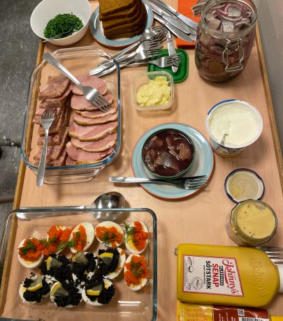 Denna kvällen strax före jul åt vi som traditionen bjuder vårt hemlagade julbord. Tyvärr saknades vår kompis Krister. Men som dom goda kamrater vi är åt vi även hans portioner.