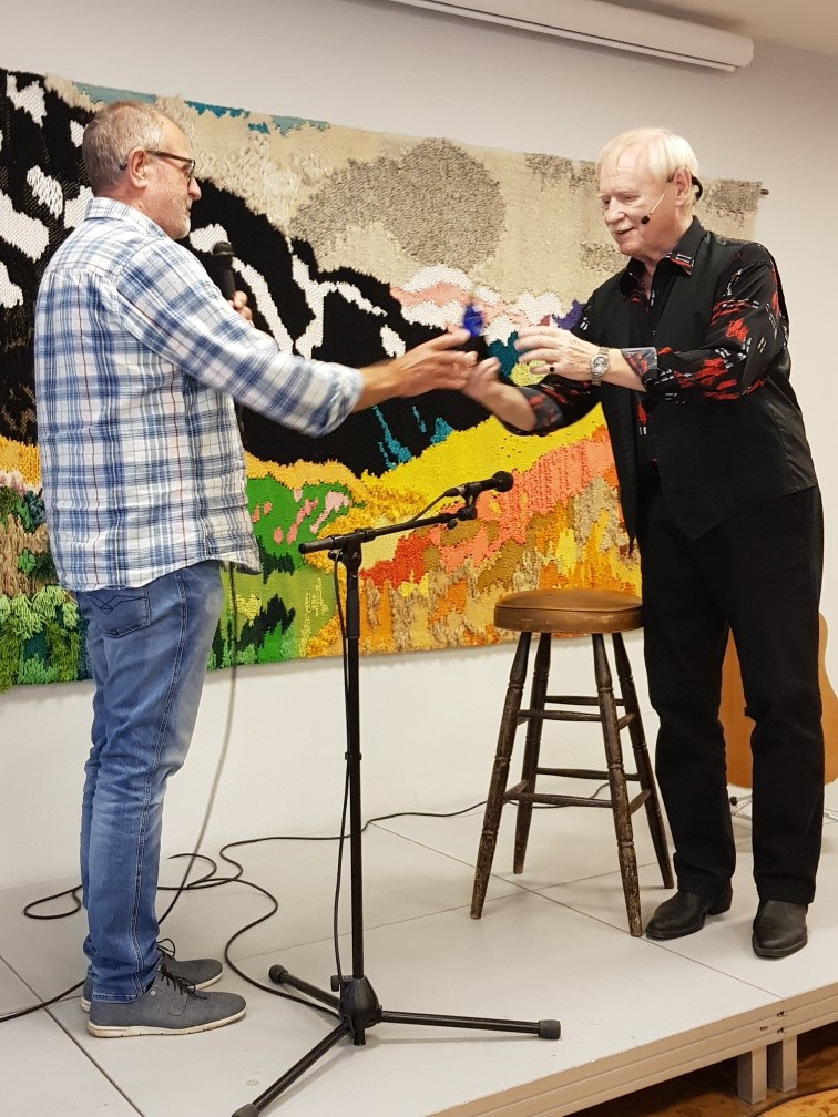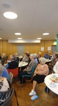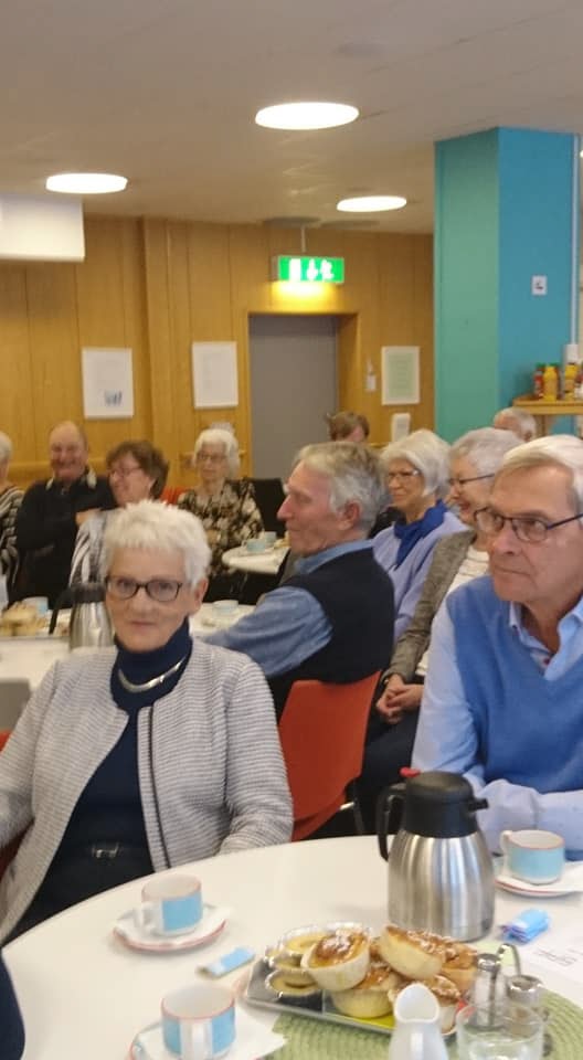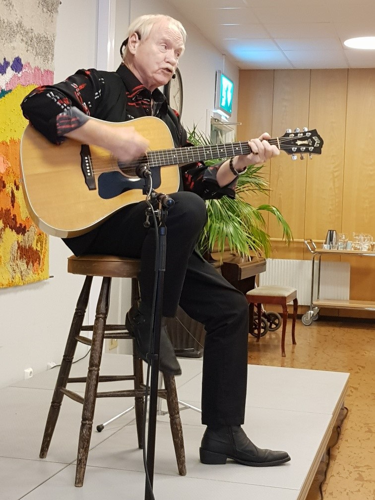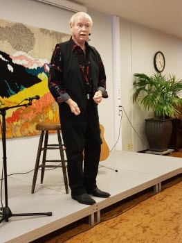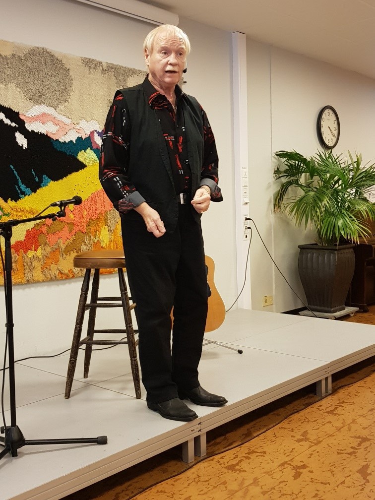 Väl inne i restaurangen gav Ove Hellström oss en otrolig trevlig eftermiddag med många glada skratt. Hans härliga dialekt gav en härlig krydda åt sina historier. Foto Magnus Eklund