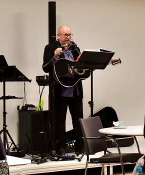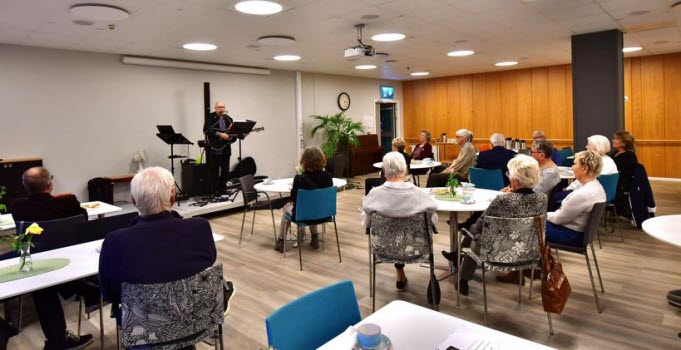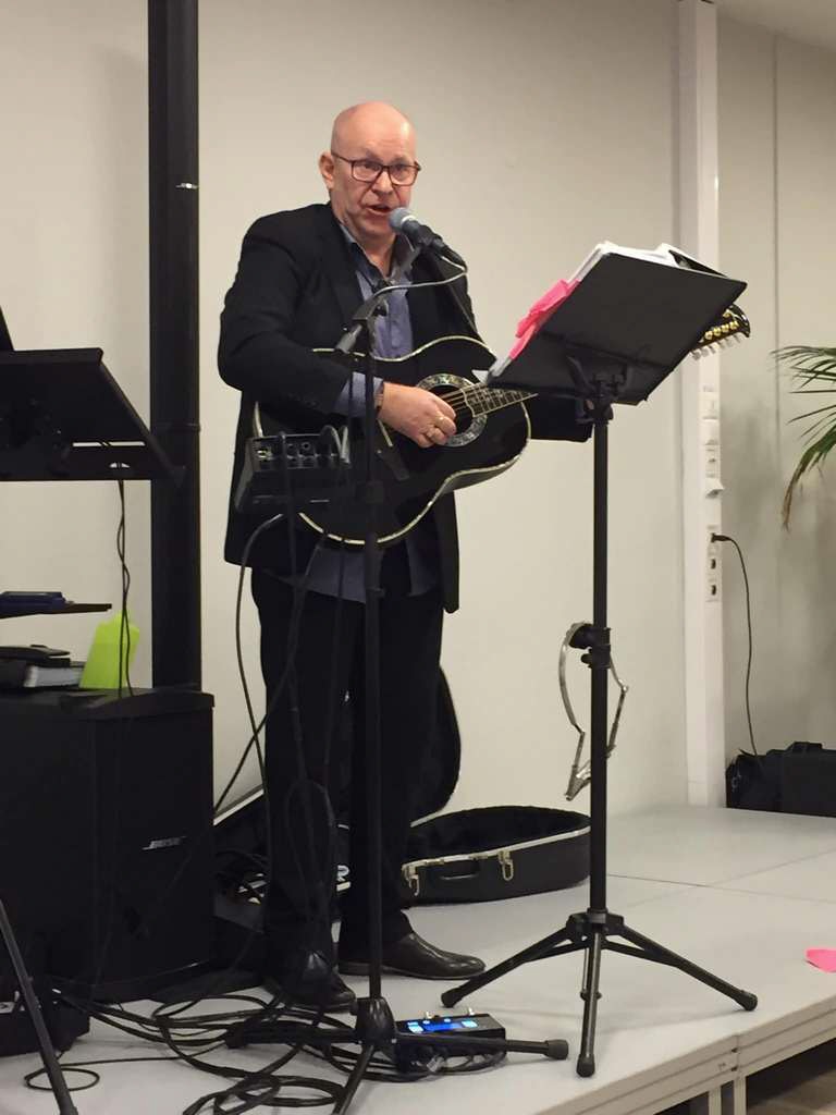 Jönköpings suveräne trubadur Lennart Axelsson underhöll på trivselträffen.