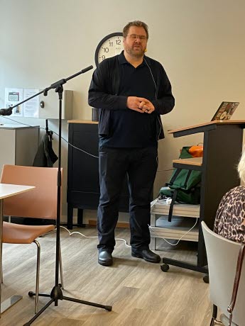 Onsdag 5 november, regntunga moln som för en gångs skull håller tätt. Dagens föredragshållare, Nils Hjort har gjort att många av våra medlemmar styrde kosan till Seniorernas Hus på Torpa.