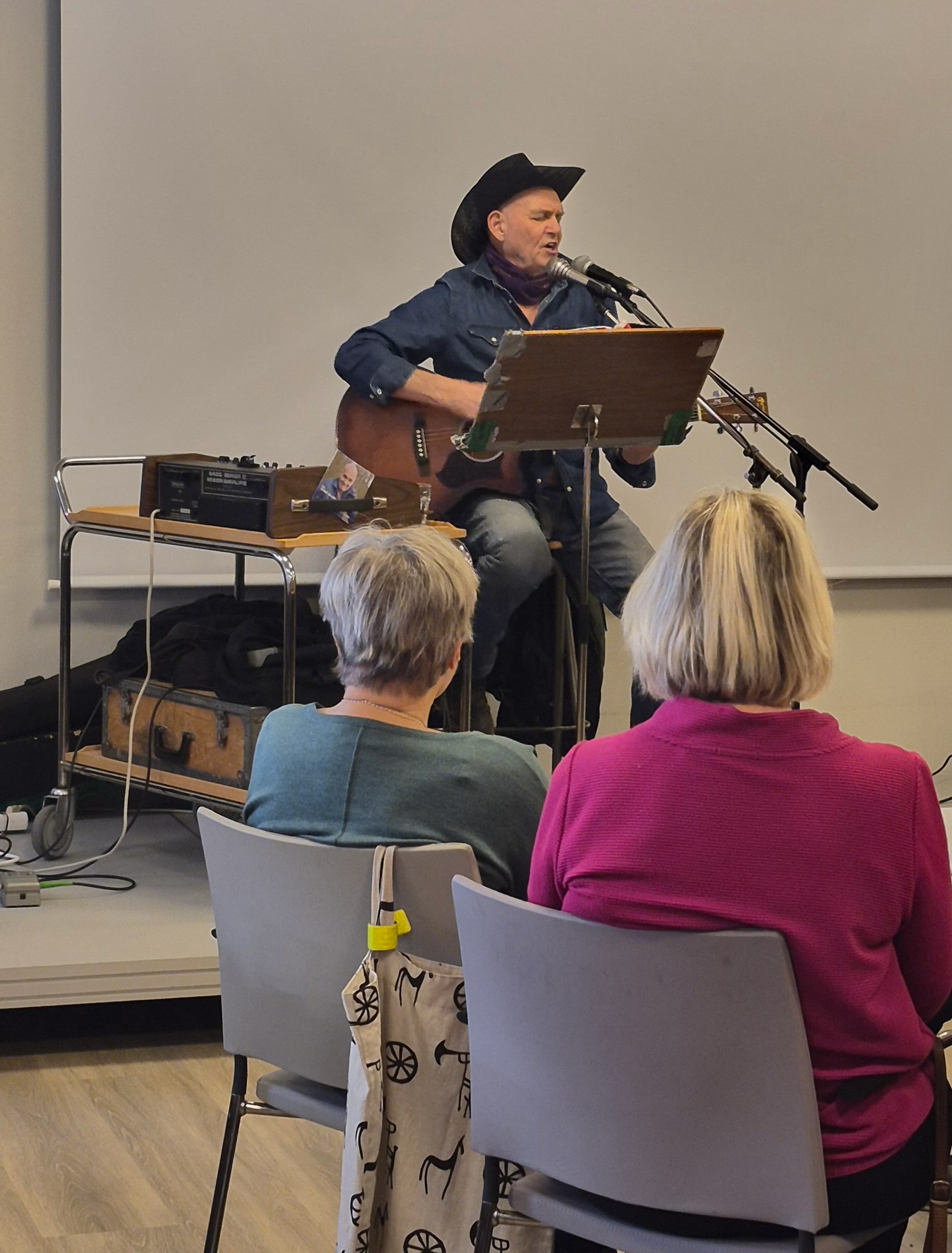 Inbjuden gäst var Bo Krister som med sin gitarr och sång satte hela restaurangen i gungning. Vi fick höra många klassiker, Jonny Cash, Dolly Parton, Hank Williams för att nämna några från over there. Svenska låtar skrivna av Bo Krister, Alf Robertsson och Mats Rådberg. Stående ovationer, långa applåder.