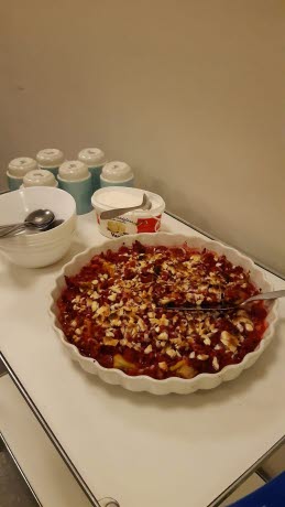 Ewa o Britt hade tagit fram menyn. Vi startade med en god blomkålssoppa, sedan var det fisk i ugn och vi avslutade med gino o vaniljglass,