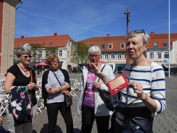 Torsdagen den 18 maj samlades en grupp medlemmar för att göra en stadsvandring från Hovrättstorget österut i staden under ledning av Lena Andersson, som är auktoriserad guide i Jönköping. Mycket kunnigt berättade hon om Jönköpings privilegiebrev från 1284 och de gamla byggnaderna kring Hovrättstorget, bland annat Göta Hovrätt som sedan 1600-talet har sin verksamhet i en och samma byggnad. Vi gick vidare österut och tittade in på en del idylliska stadsgårdar som står i bjärt kontrast till den hårt trafikerade Östra Storgatan. Promenaden tillbaka till centrum gjordes på Kanalgatan som alltså fram till 1930-talet var en kanal från Munksjön. Via denna tog man sig in till den hamnbassäng som numera är igenfylld och blev Östra Torget, som en gång var det stora salutorget i Jönköping. Vi såg också en del av den nya staden, Kålgården, och via museets park kom vi så tillbaka till utgångspunkten.