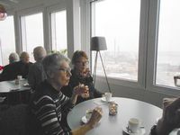 Därefter förflyttade vi oss upp till 16 våningen och Skybaren för kaffe på maten. Skybaren ligger högst upp, på 64 meters höjd och har en vidunderlig utsikt över Jönköping. Vädret var tyvärr lite halvmulet men trots det var utsikten fantastisk, vid klart väder kan man se ända till Visingsö.Nöjda och belåtna med både förplägnad och "ögongodis" tog vi hissen ner från 16 våningen.
