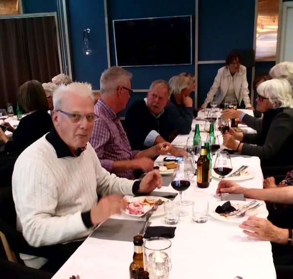 Tyvärr hade vi otur med vädret, så den fantastiska utsikten gick vi miste om. Kvällen blev ändå mycket trevlig med mat, vin/öl och levande musik. En av våra medlemmar fyllde 65 år och blev hyllad med sång och hurrarop. Det blev en kväll med gemytlig och social samvaro.