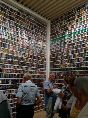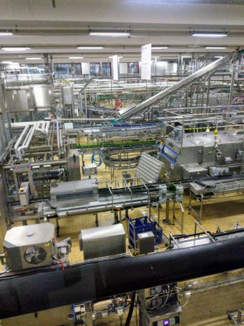 Därefter började rundvandringen i anläggningen där vi informerades av en mycket kunnig (och trevlig) guide. Bryggeriet som startades 1856 är familjeägt, det är nu fjärde generationen som tagit vid. Åbro är Sveriges tredje största bryggeri och de har 226 anställda. Fabriksytan är 48 000 kvadratmeter och vattnet de använder kommer från en underjordisk källåder. Åbro bryggeri producerar öl. cider, vatten och läsk, sammanlagt drygt 400 olika artiklar/drycker varav 16 olika sorters öl. Öl tar cirka 6 veckor att producera ifrån att malten kommer in i anläggningen. De har 5 produktionslinjer, 2 för flaskor, 2 för burkar och 1 för större ölfat till bl.a. restauranger. Den snabbaste linjen tillverkar 70 000 burkar i timmen. 25 lastbilar per vecka körs från Åbro bryggeri till den tyska gränshandeln.