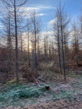 Är lärkskogen avlövad eller avbarrad? Skickar med en bild från i somras när vi gick samma runda den 9 juni. Det skiljer en del på sommar och vinter.