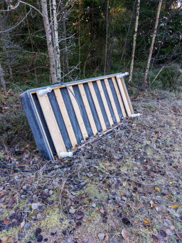Fortsatte genom Hästhagen och den svart/vita vandringsleden (Mullsjö runt). Fikade vid skjutbanan och gick vit/svarta leden via "crossbanan" tillbaka till bilen. Tyvärr finns det folk som släpat ut en säng. Undrar om det är någon älg som behöver vila nu i jakttider...