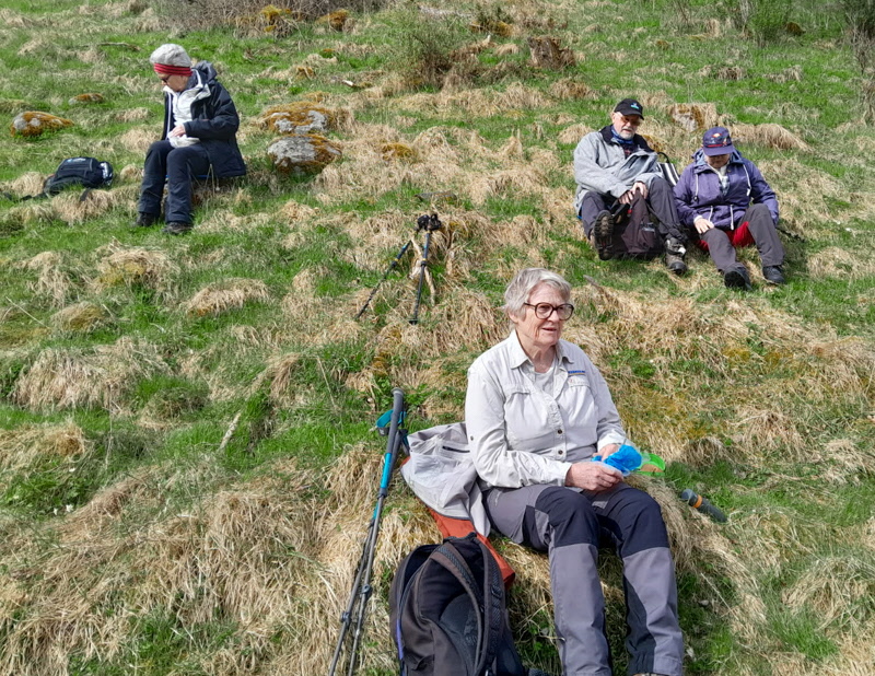 Det blev besök på Ljunghems backar för att titta på backsipporna. Det fanns en hel del utslagna och fler på gång. Det var mulet och lite blåsigt. Fikat blev nedanför åsen mot skogen där var lä. Det syntes på vitsipporna att det varit kallt.